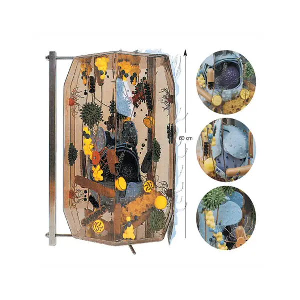 Modello ingrandito 40.000 volte. Eccellente per studiare la struttura dell’unità più piccola di qualsiasi creatura vivente con una vita indipendente. Mostra gli organelli funzionali essenziali della cellula fornendo un’istantanea dell’equilibrio dinamico della cellula. Vengono mostrati in sezione: nucleo, alcuni mitocondri, lisosomi, in modo da osservarne la struttura interna. Montata su supporto. Dimensione cm 60x46x46.