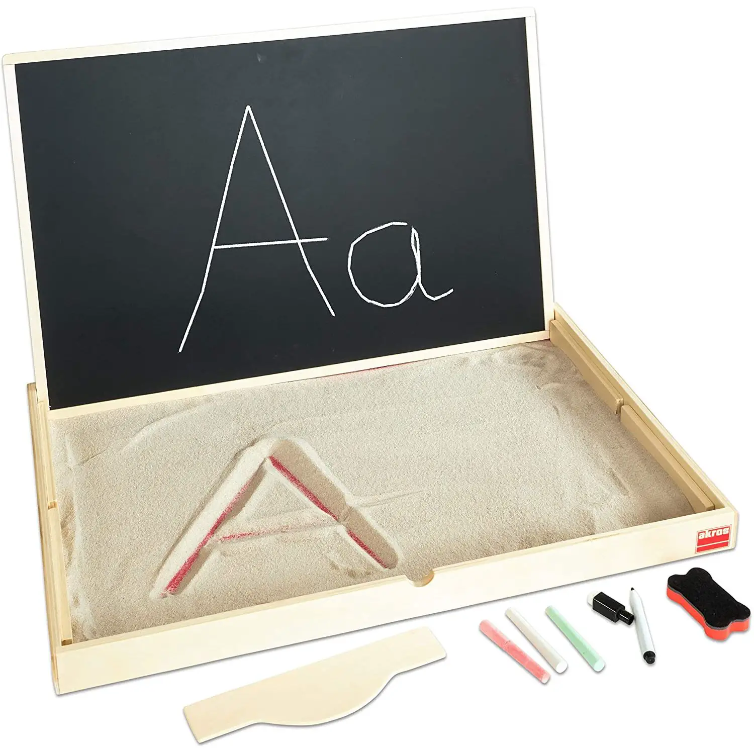 - La quantità maggiore di sabbia permette una più ampia gamma di attività. I bambini possono creare lettere, numeri e forme diverse, migliorando la loro comprensione spaziale e abilità motorie fine.