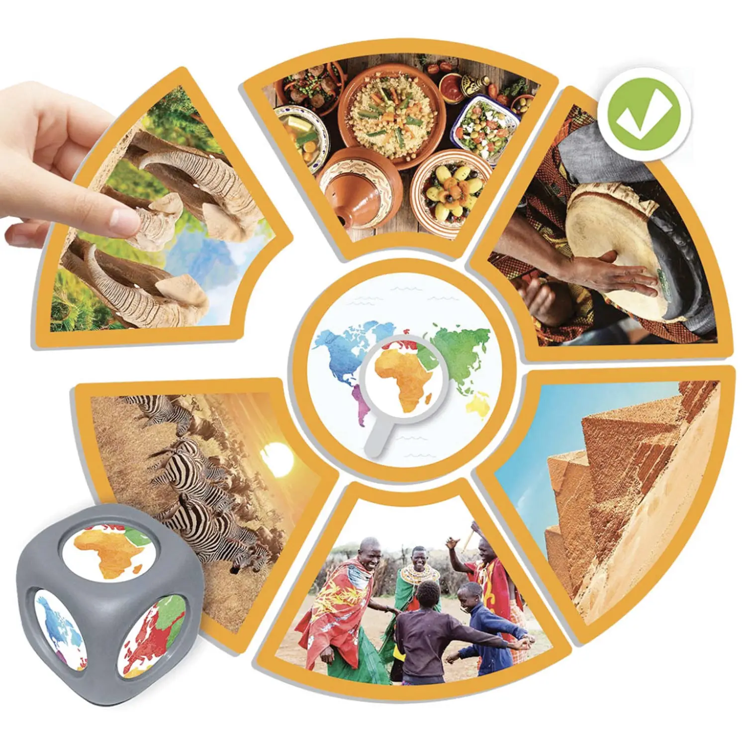 - 1 dado dei continenti (3,5 x 3,5 cm)
