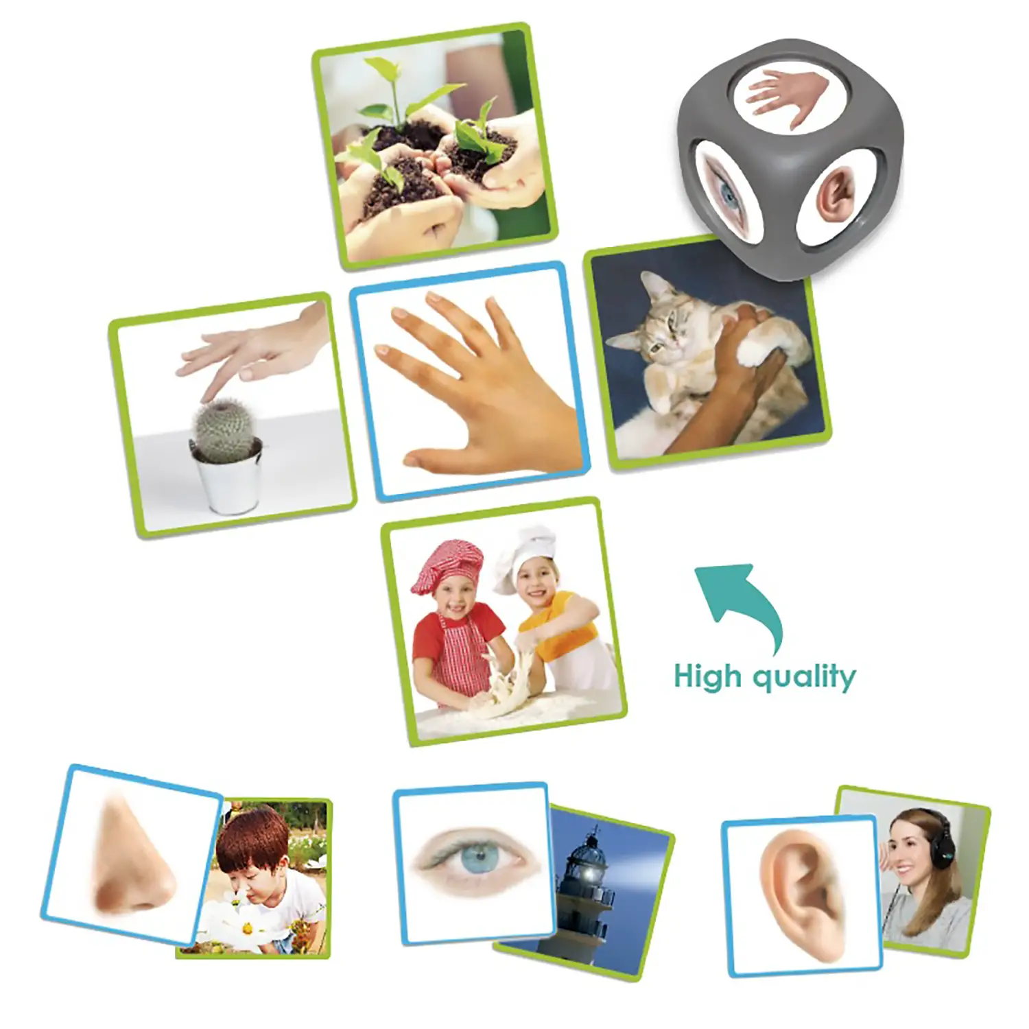 I Nostri Sensi: Set Educativo per Scoprire i 5 Sensi - 50 Tessere 9x9 cm + Dado