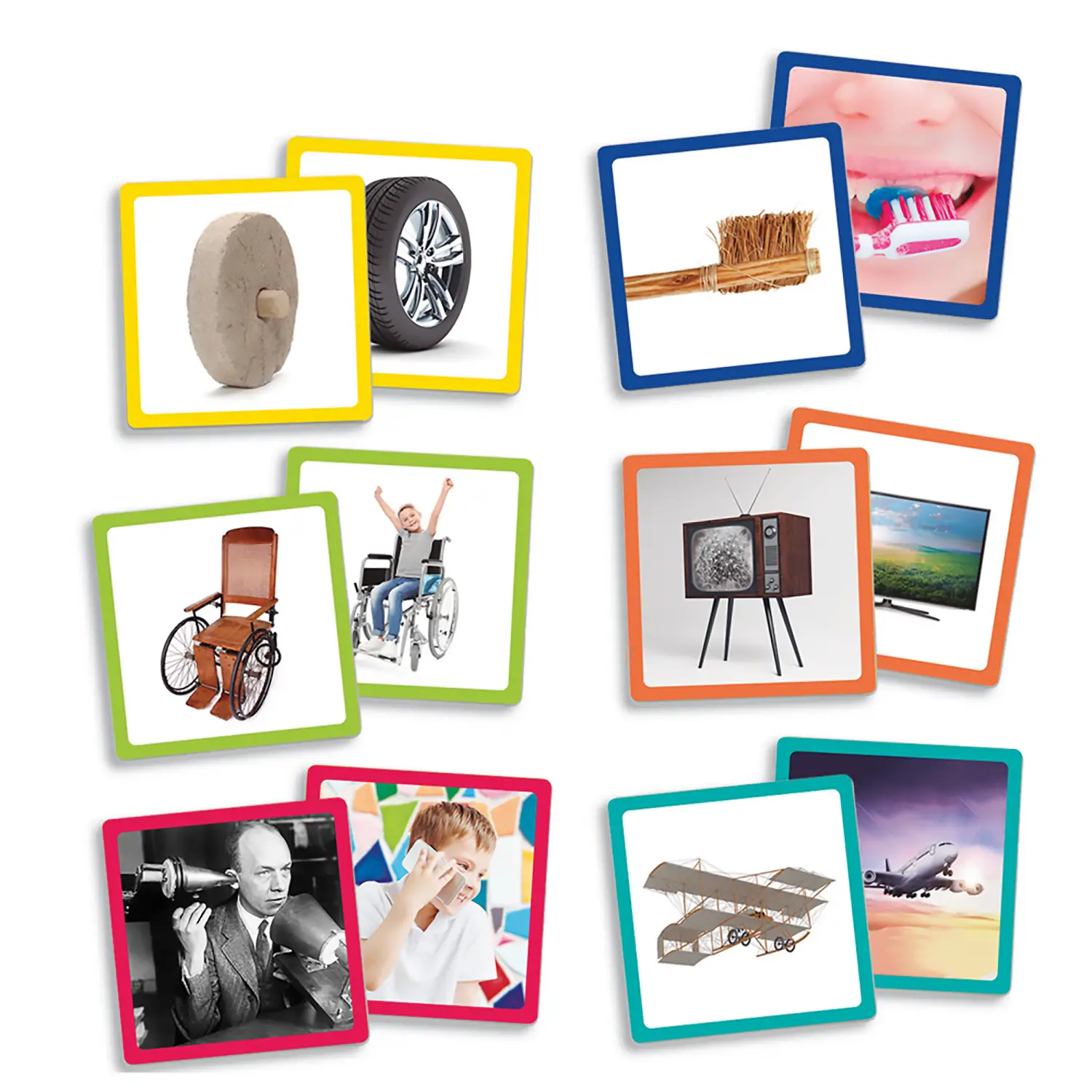 - ✅ Viaggio nel tempo tra le grandi invenzioni e il progresso tecnologico con 34 tessere illustrate.