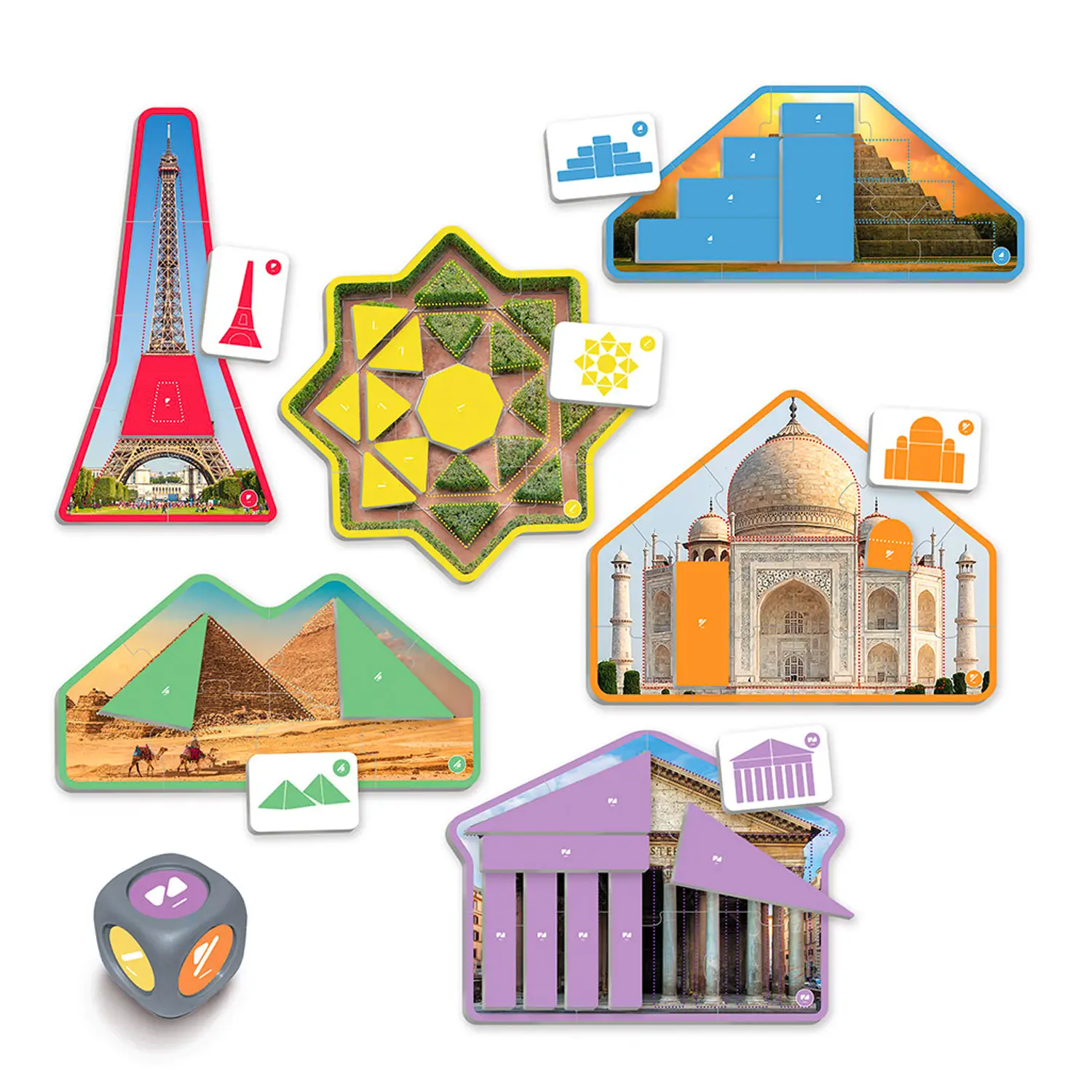 - ✅ Gioco educativo che aiuta i bambini a riconoscere e comprendere le forme geometriche nell'architettura.
