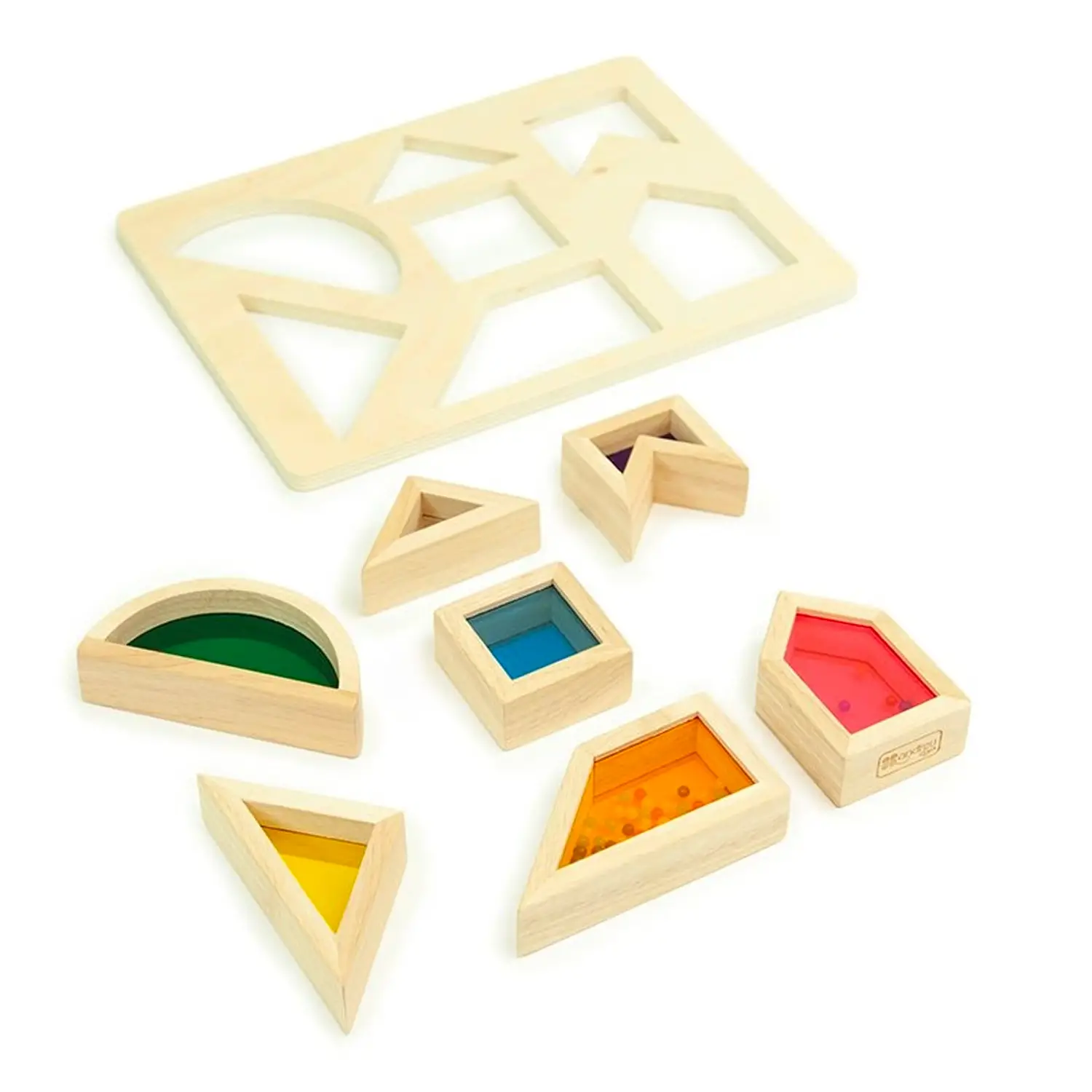 - Contenuto: 1 tavola + 7 blocchi in legno con inserti trasparenti