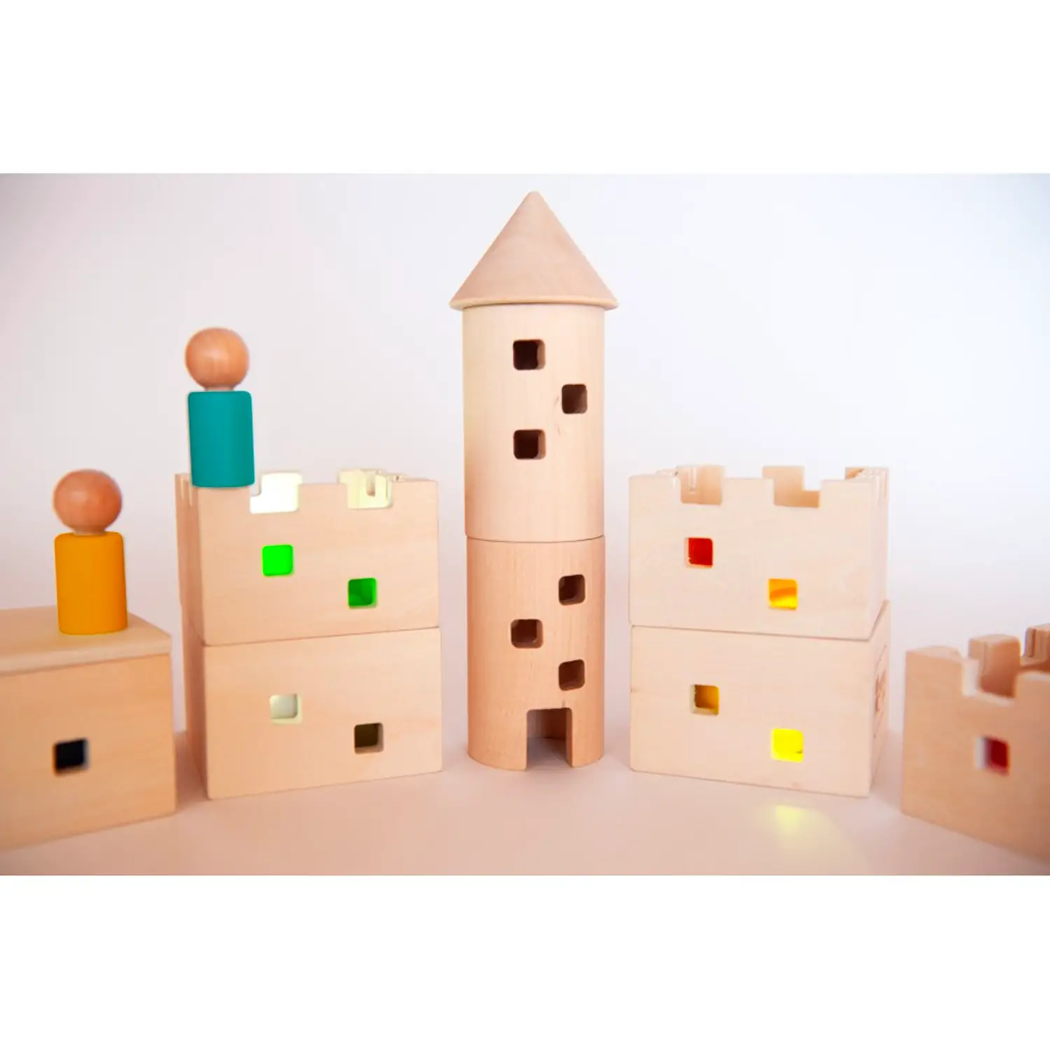 Porta la fantasia dei bambini a nuovi livelli con il Castello Traslucente in Legno, un set da costruzione unico che unisce design medievale, finestre colorate e gioco sensoriale. Ideale per essere utilizzato su tavoli luminosi, con pannelli LED o con torce, questo castello trasparente trasforma ogni storia in un’esperienza visiva affascinante.