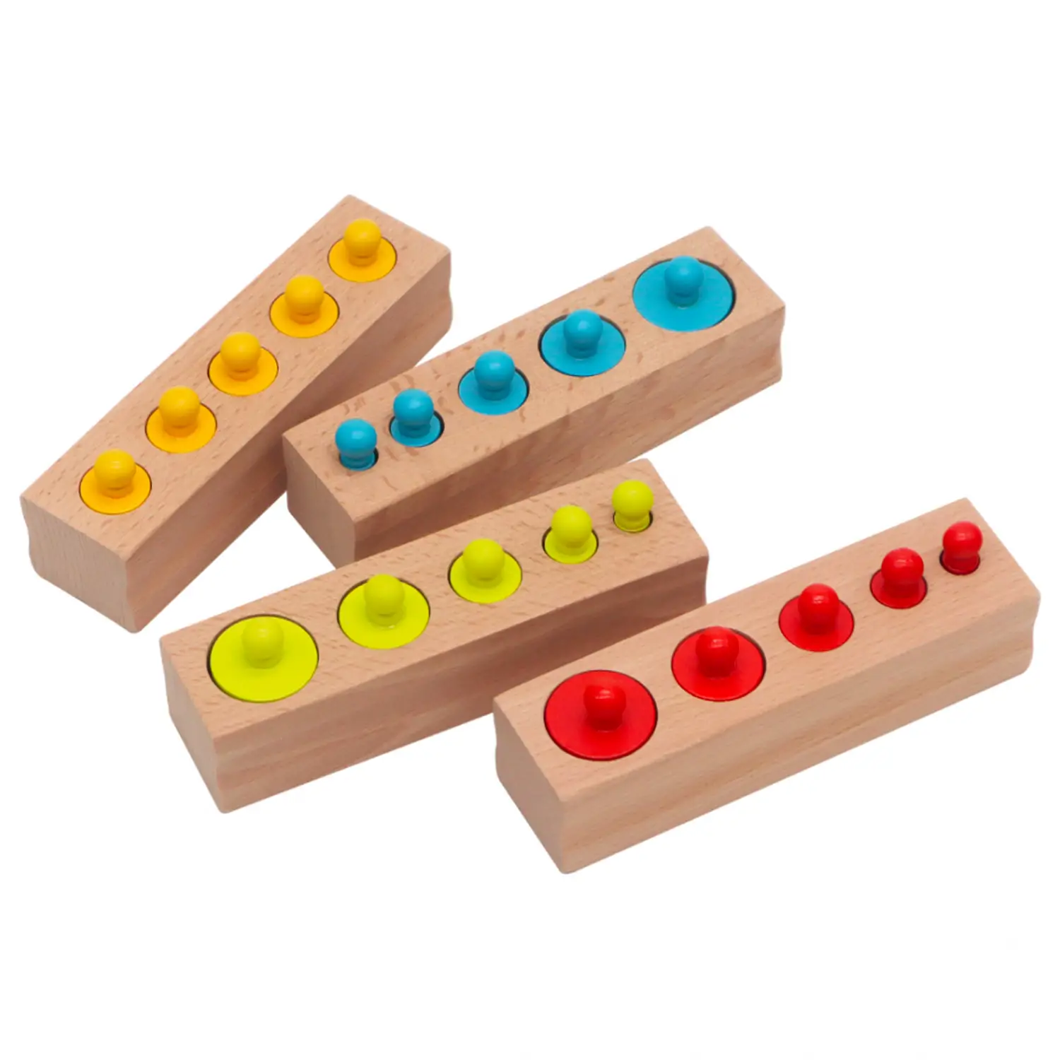 - ✅ Gioco educativo ispirato al metodo Montessori per ordinare cilindri in legno di diverse dimensioni.