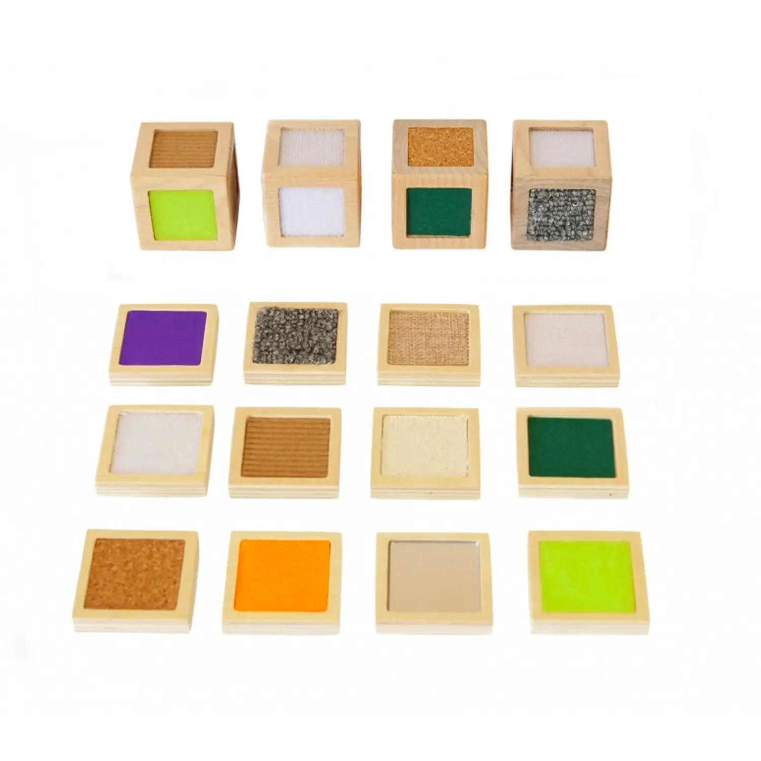 - ✅ 4 cubi in legno con superfici tattili e 12 pezzi da abbinare.