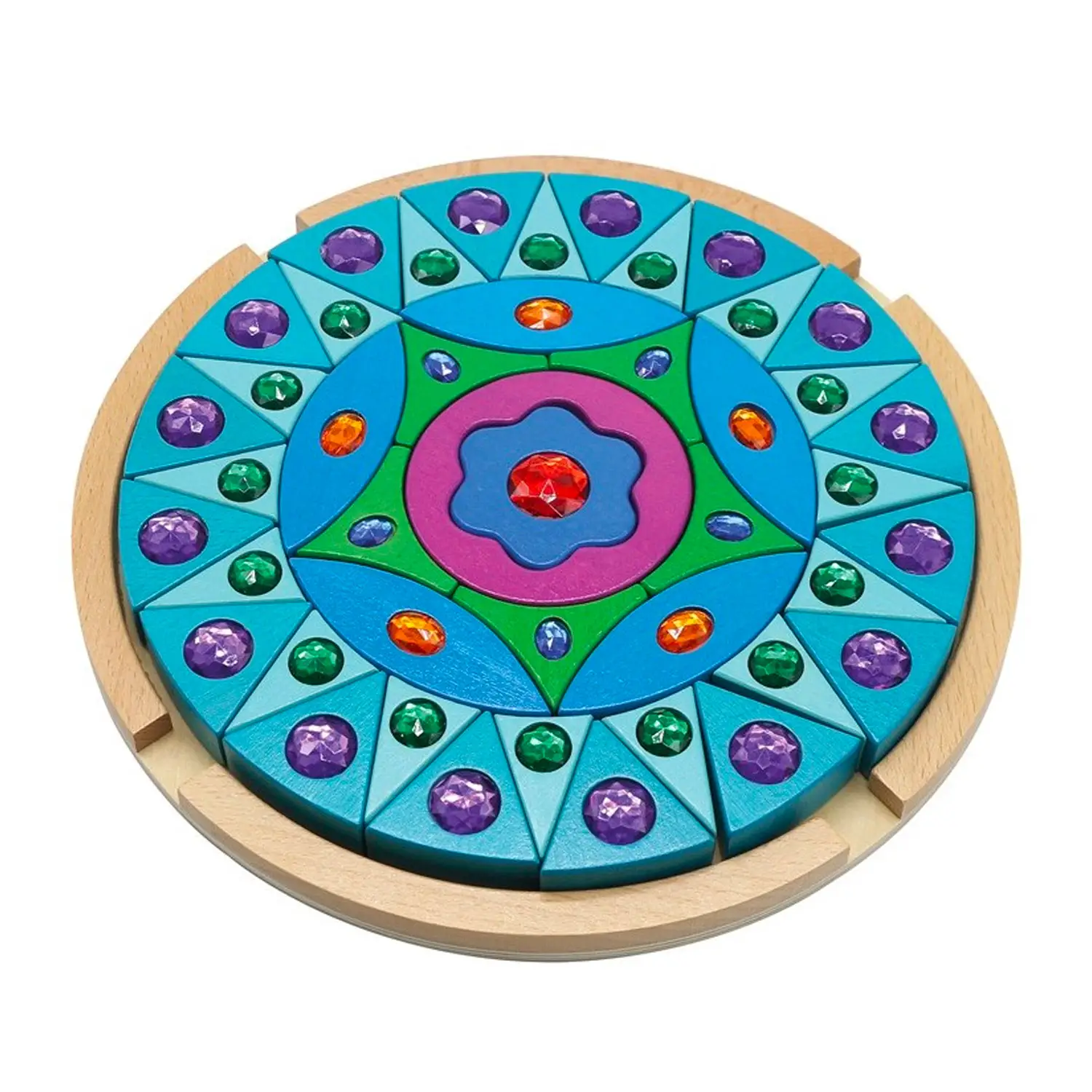 - ✅ Mandala in legno massello con gemme colorate per creatività e calma.