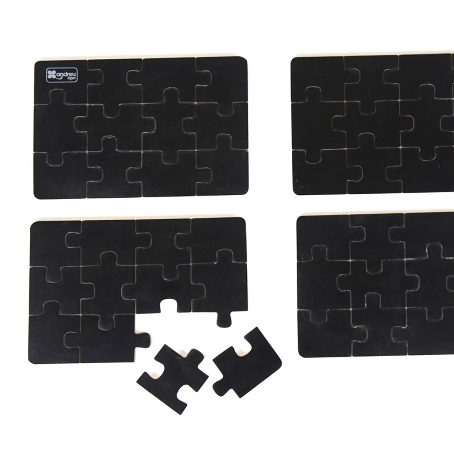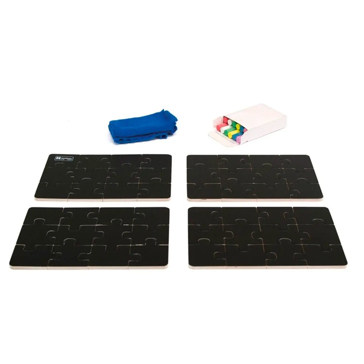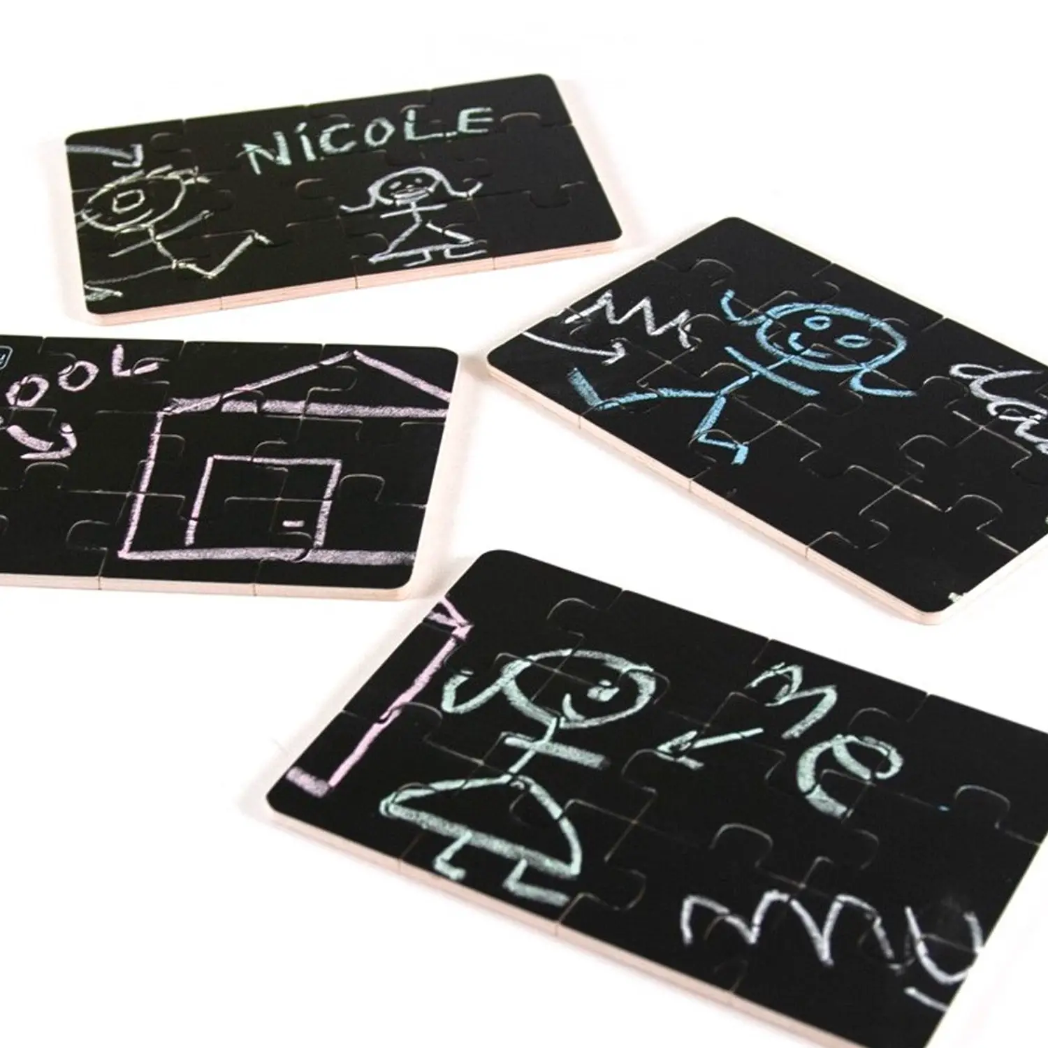 - ✅ Set di 4 puzzle in legno con superficie a lavagna ardesia.