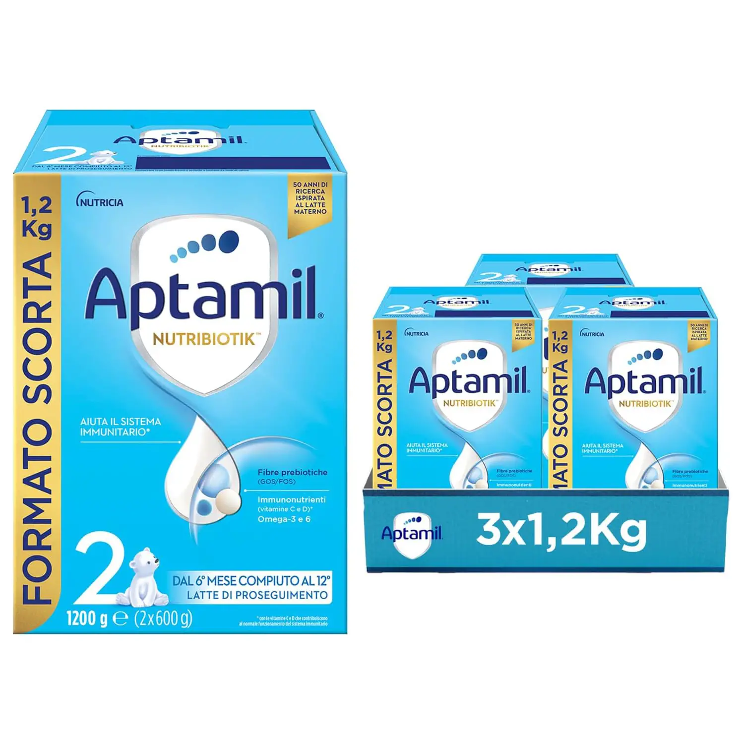 Aptamil 2 Latte di Proseguimento 1200g – Latte in Polvere per Neonati dal 6° Mese - conf. 3 pz