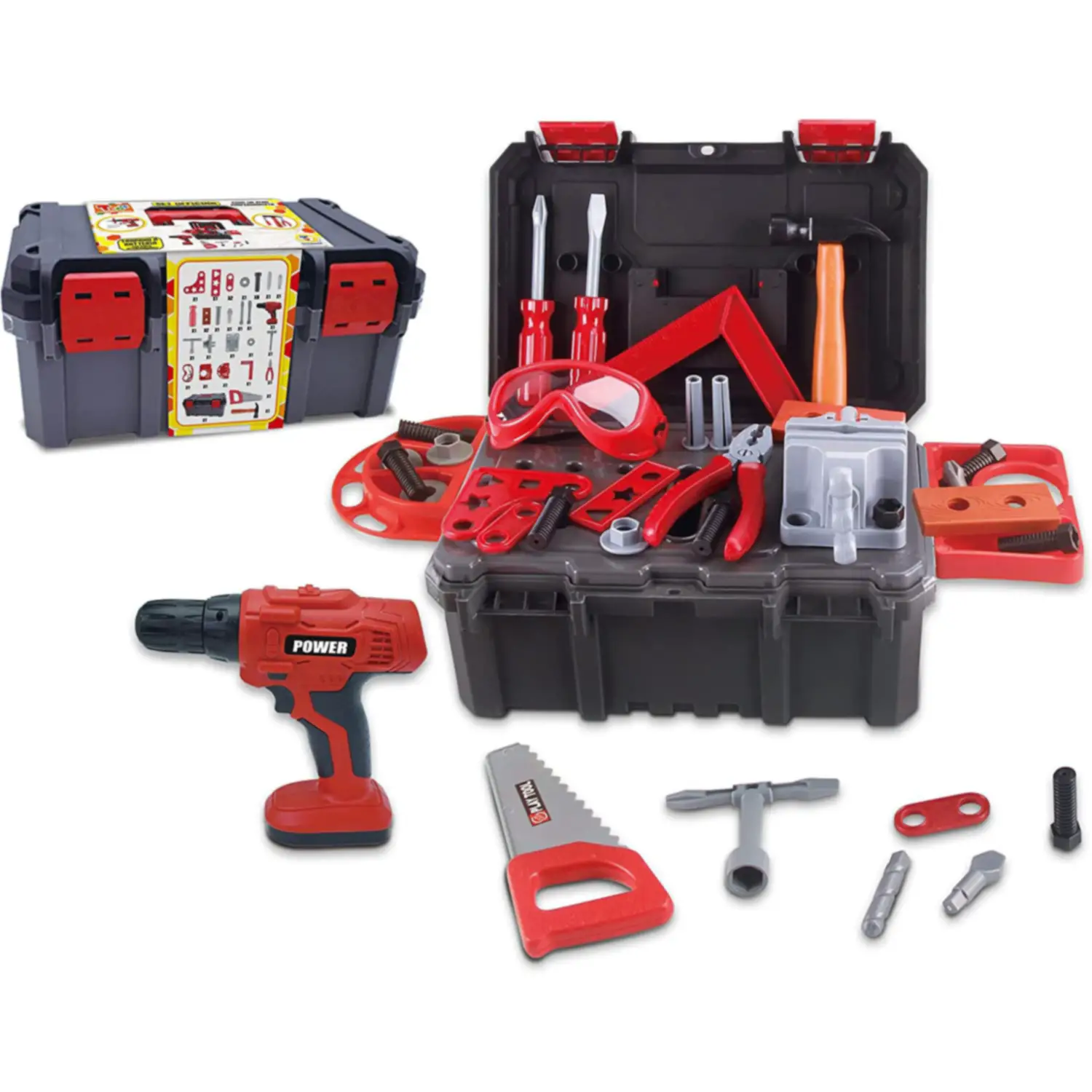 - ✅ Include 40 attrezzi giocattolo che imitano strumenti reali, come trapano, martello e viti di varie dimensioni.