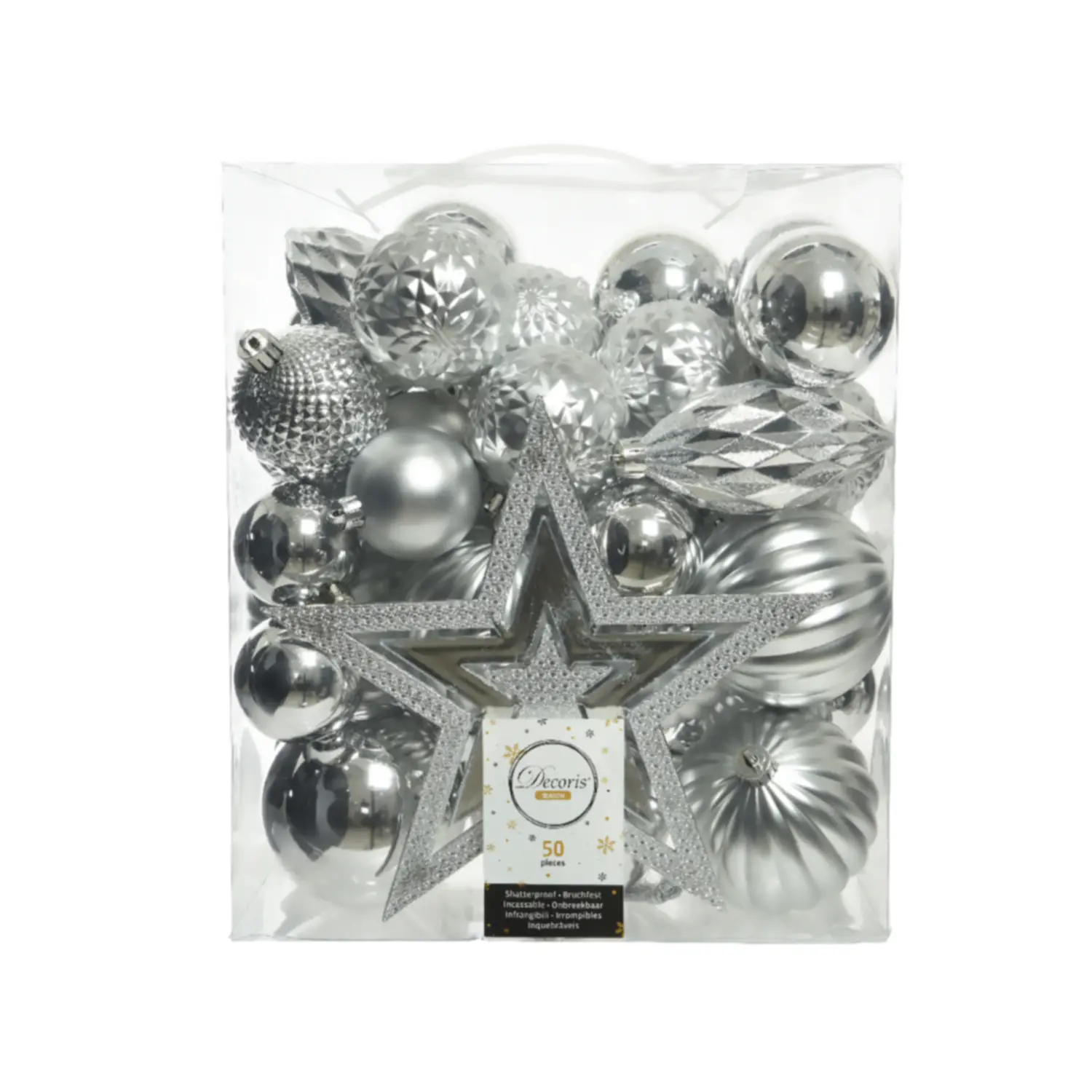 Set Palline di Natale Argento con Punta Albero – Brillantezza e Raffinatezza