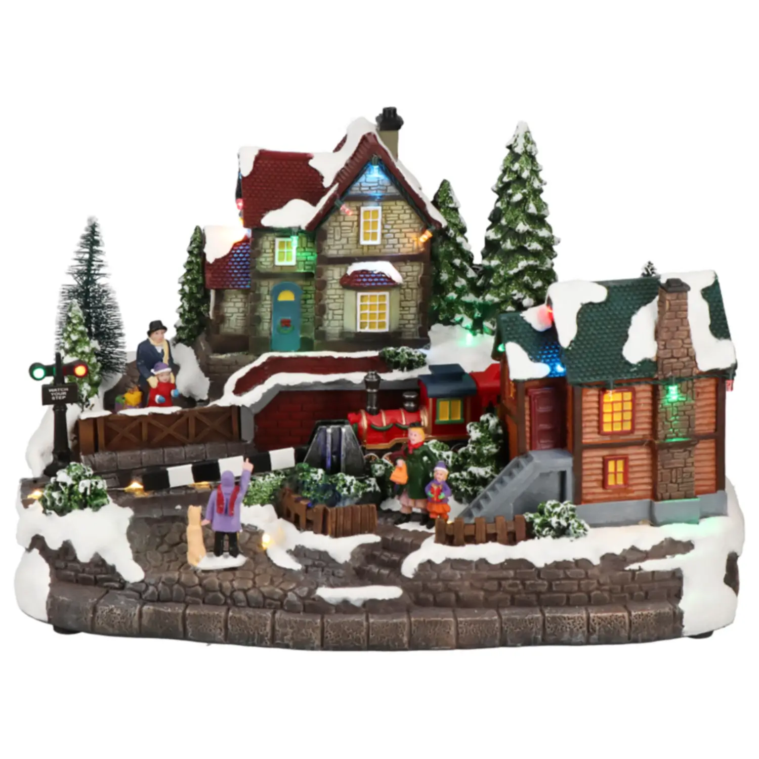 Scenario Natalizio Villaggio Treno Animato Musiche e Luci Led Multicolor Adattatore Incluso