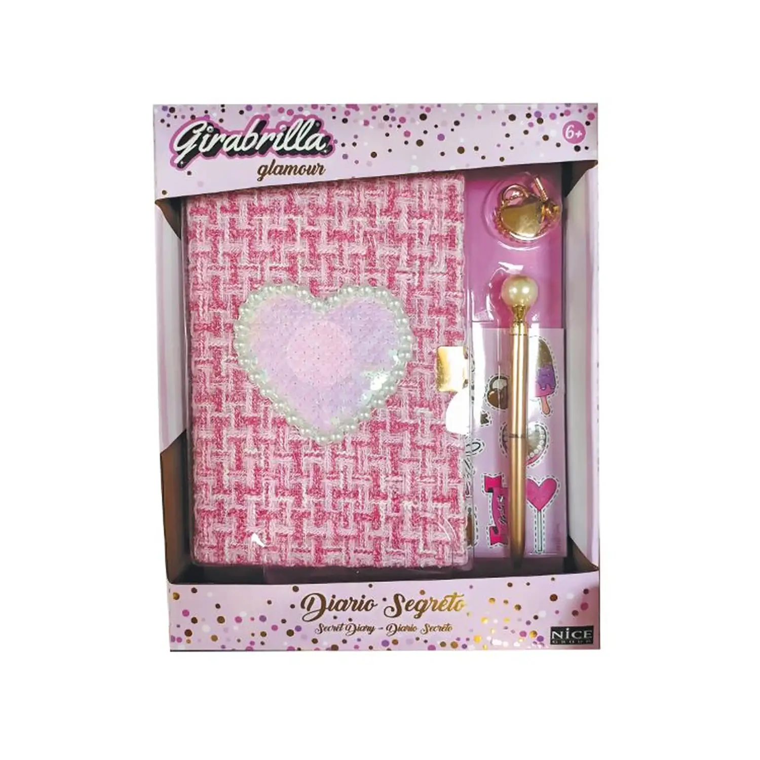 Girabrilla Tweed Notebook Il Girabrilla Tweed Notebook è un’agenda esclusiva, perfetta per scrivere, disegnare e conservare idee preziose. La copertina è realizzata in elegante tessuto tweed, decorata con paillettes reversibili e perle che aggiungono un tocco di stile e originalità.