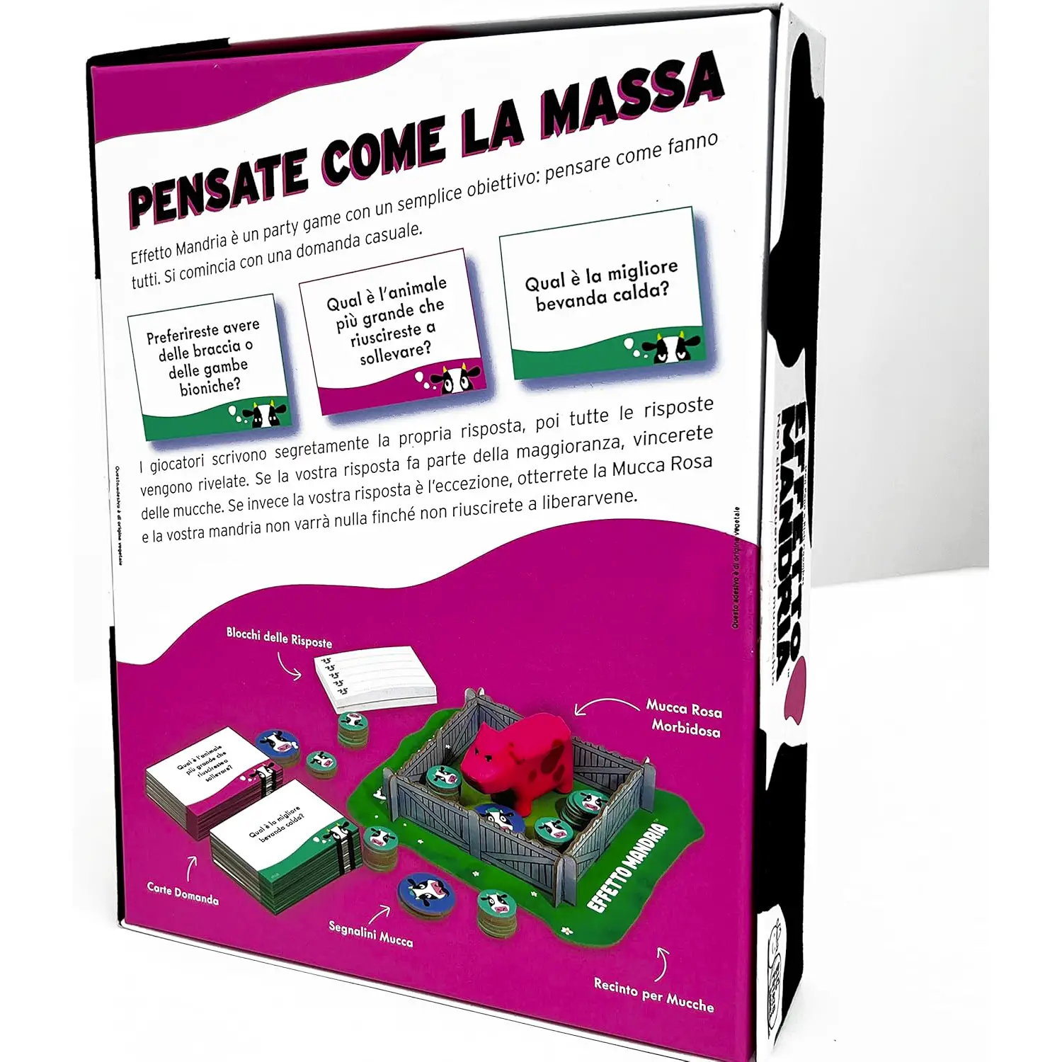 Un Party Game Ricco di Risate Grazie alle regole semplici e al ritmo veloce, Effetto Mandria è ideale per gruppi numerosi e garantisce momenti di divertimento e risate a ogni turno.