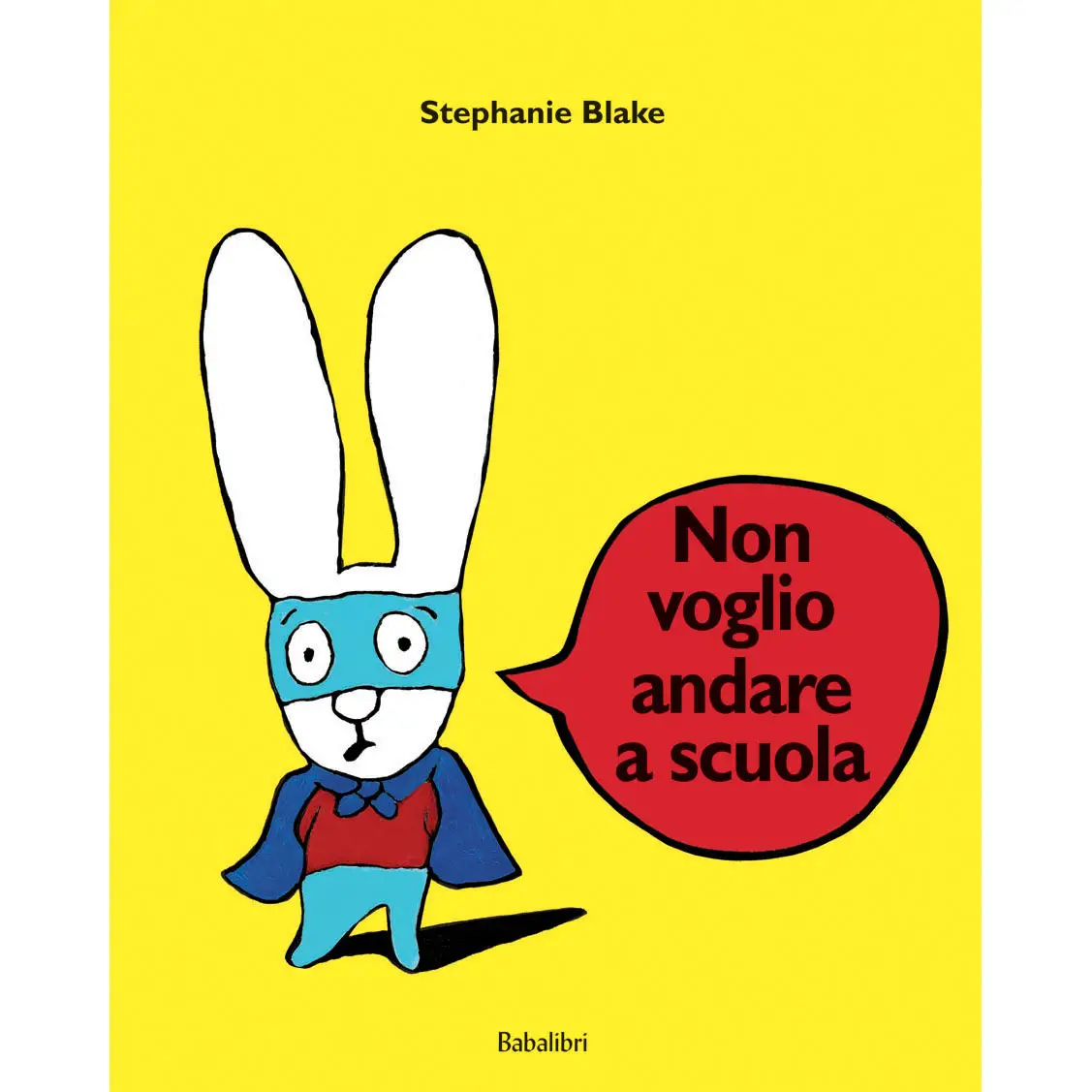 Simone deve affrontare il primo giorno di scuola. «No, non voglio!» Mamma e papà fanno di tutto per rassicurarlo, ma nulla può tranquillizzare il piccolo coniglio. «Non voglio andare a scuola!» ripete Simone preoccupato. La paura non lo fa dormire. Non si sente affatto un Superconiglio, come dice la sua mamma. Ma quando, finito il fatidico primo giorno di scuola – dopo aver pianto, disegnato, giocato e mangiato il budino, fatto il riposino e suonato il tamburo –, arriva la mamma e dice: «Si torna a casa, tesoro!» il piccolo Simone risponde a sorpresa: «No, non voglio!».