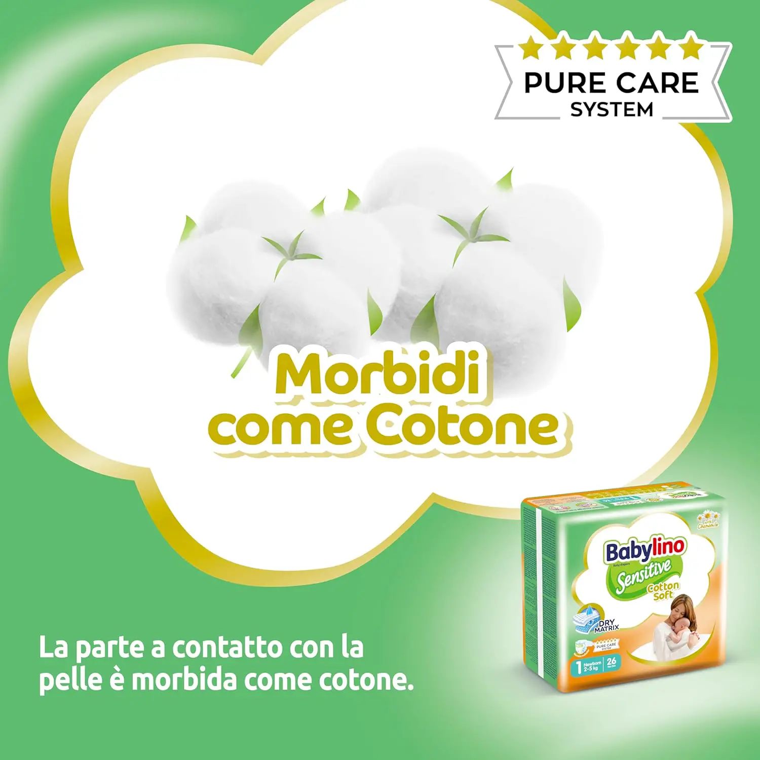 Formato e Comodità Ogni confezione contiene 26 pannolini, progettati per offrire protezione, delicatezza e sicurezza in ogni momento della giornata. Perfetti per neonati e bambini fino ai 36 mesi!