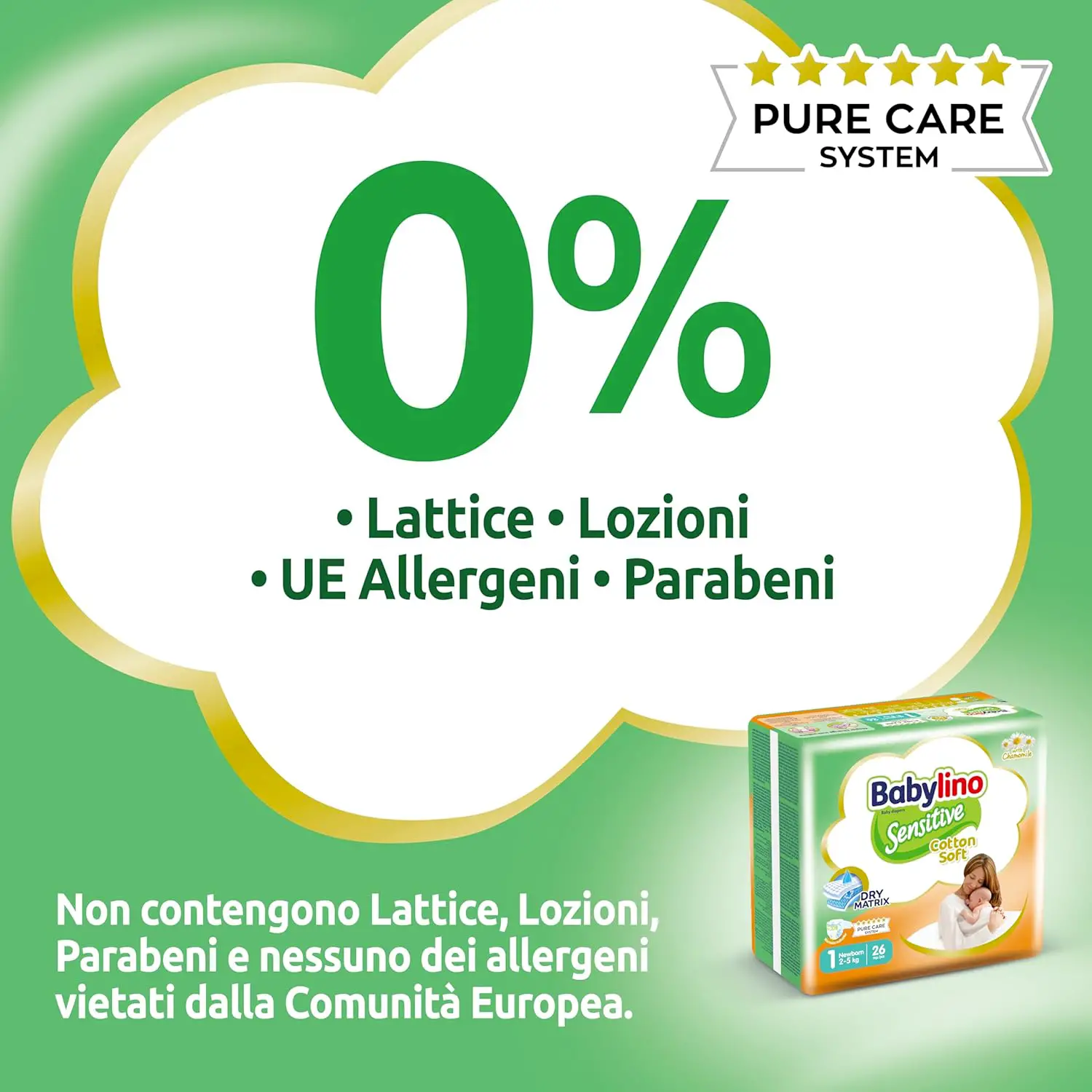 Babylino Sensitive Pannolini Neonato Taglia 1 - 2/5 Kg 26 Pezzi