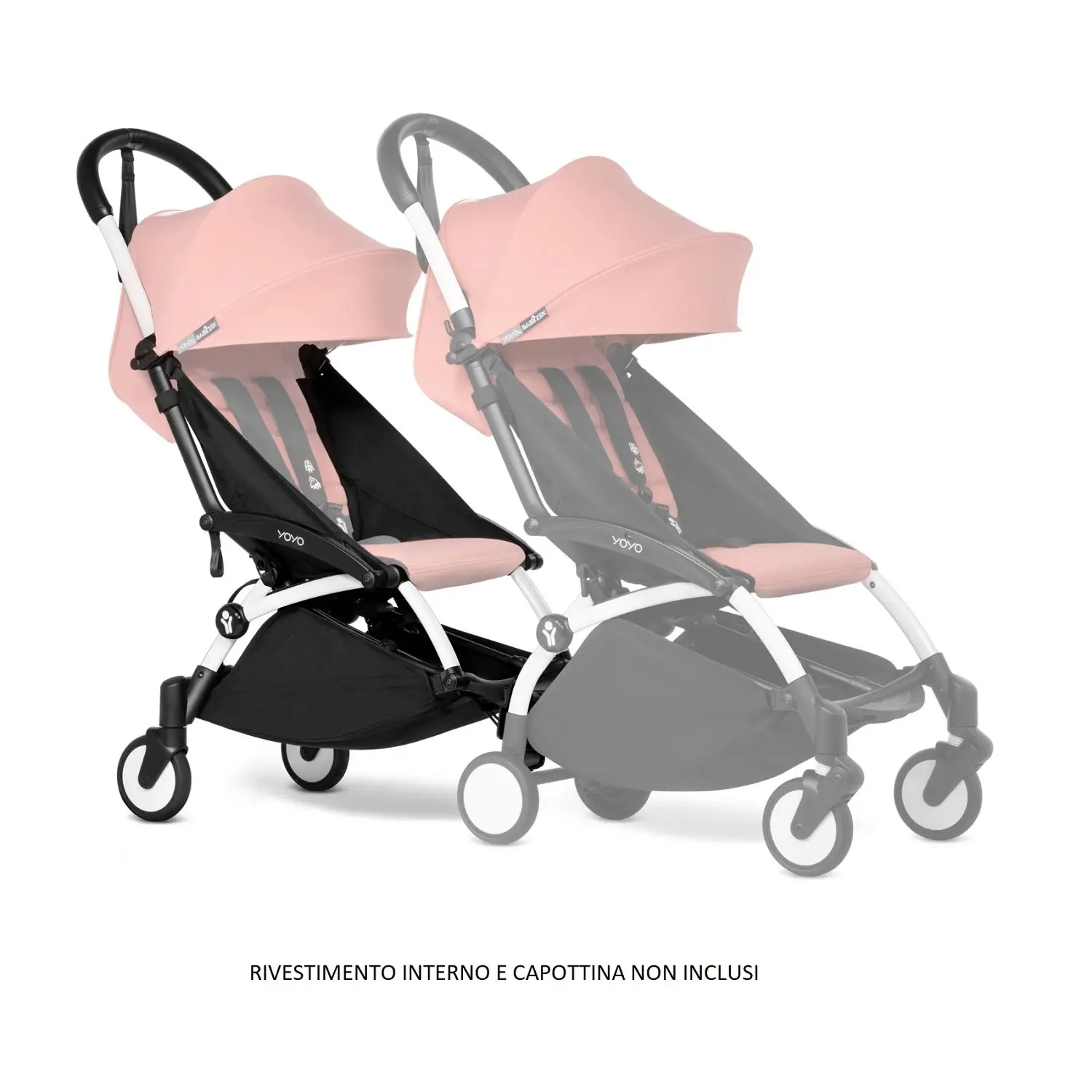 La bassinet si aggancia allo Yoyo connect con speciali adattatori venduti separatamente. Il rivestimento 0+ invece NON si potrà utilizzare sullo Yoyo connect.