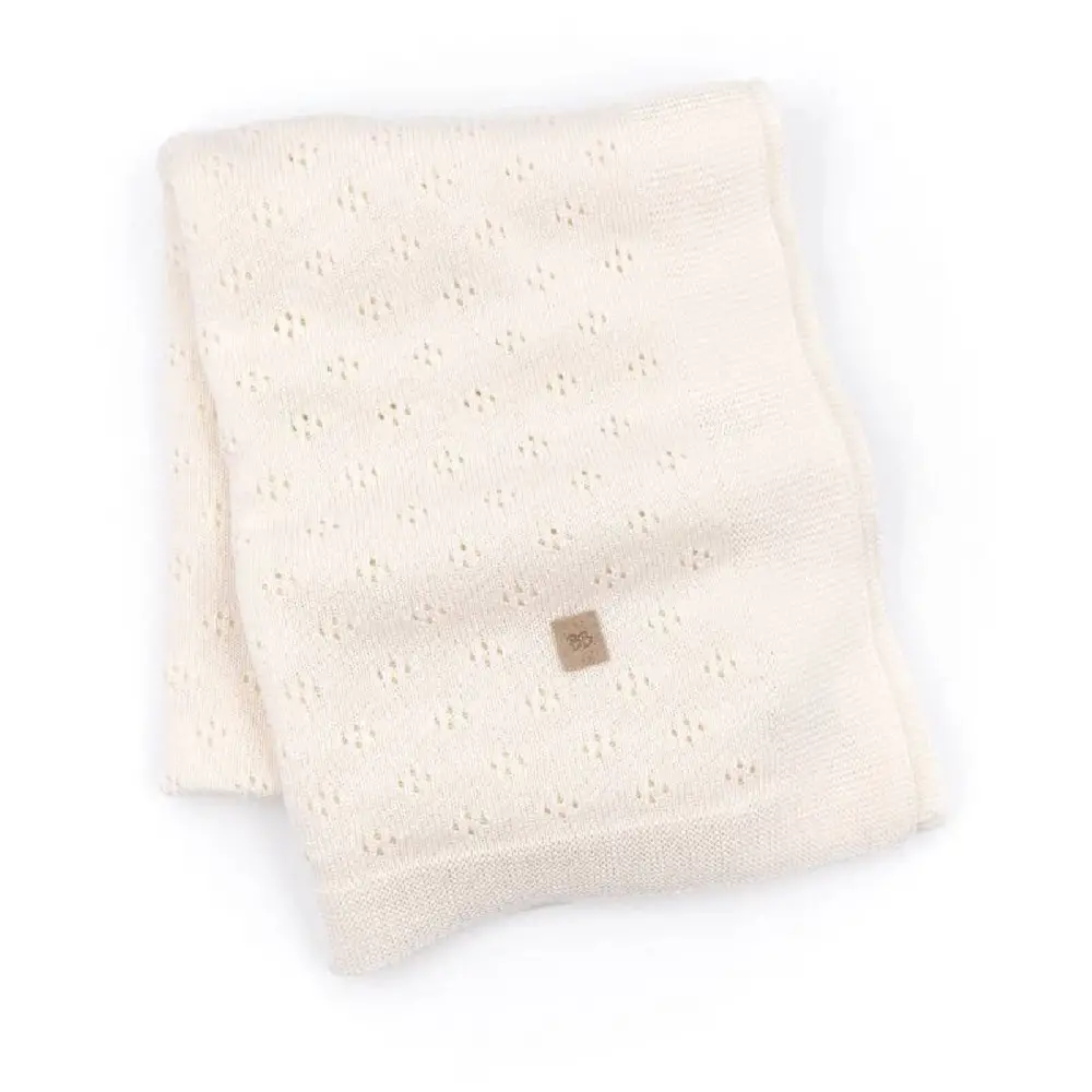 Bamboom Copertina Traforata Estiva Lavorata a Maglia Neonato 75x100cm. Panna