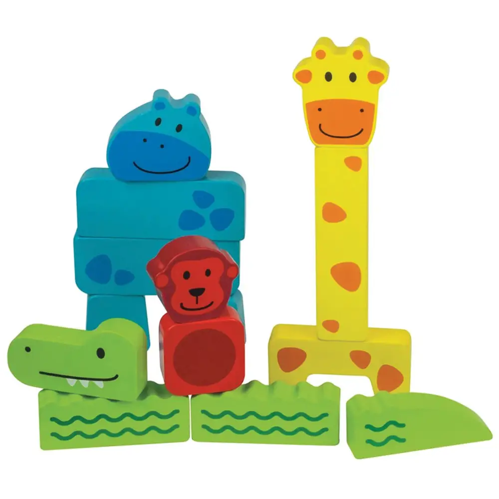- ✅ Set di 14 blocchi in legno decorati con faccine di animali: crea coccodrillo, ippopotamo, scimmia e giraffa oppure creature fantastiche.