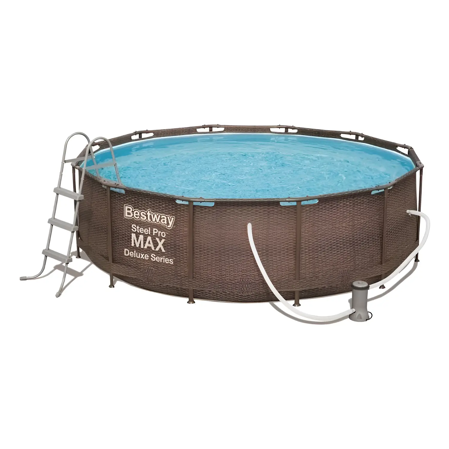 La piscina Steel Pro Max Rattan, con dimensioni di 366x100 cm e una capacità di 9,150 litri, offre un’esperienza estiva perfetta. Il suo design in rattan marrone si integra armoniosamente in ogni giardino, aggiungendo un tocco di eleganza e originalità al tuo spazio esterno.