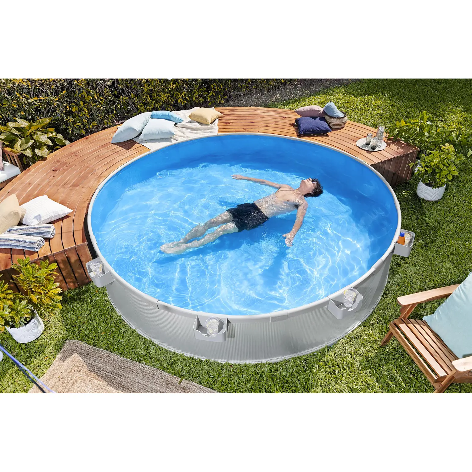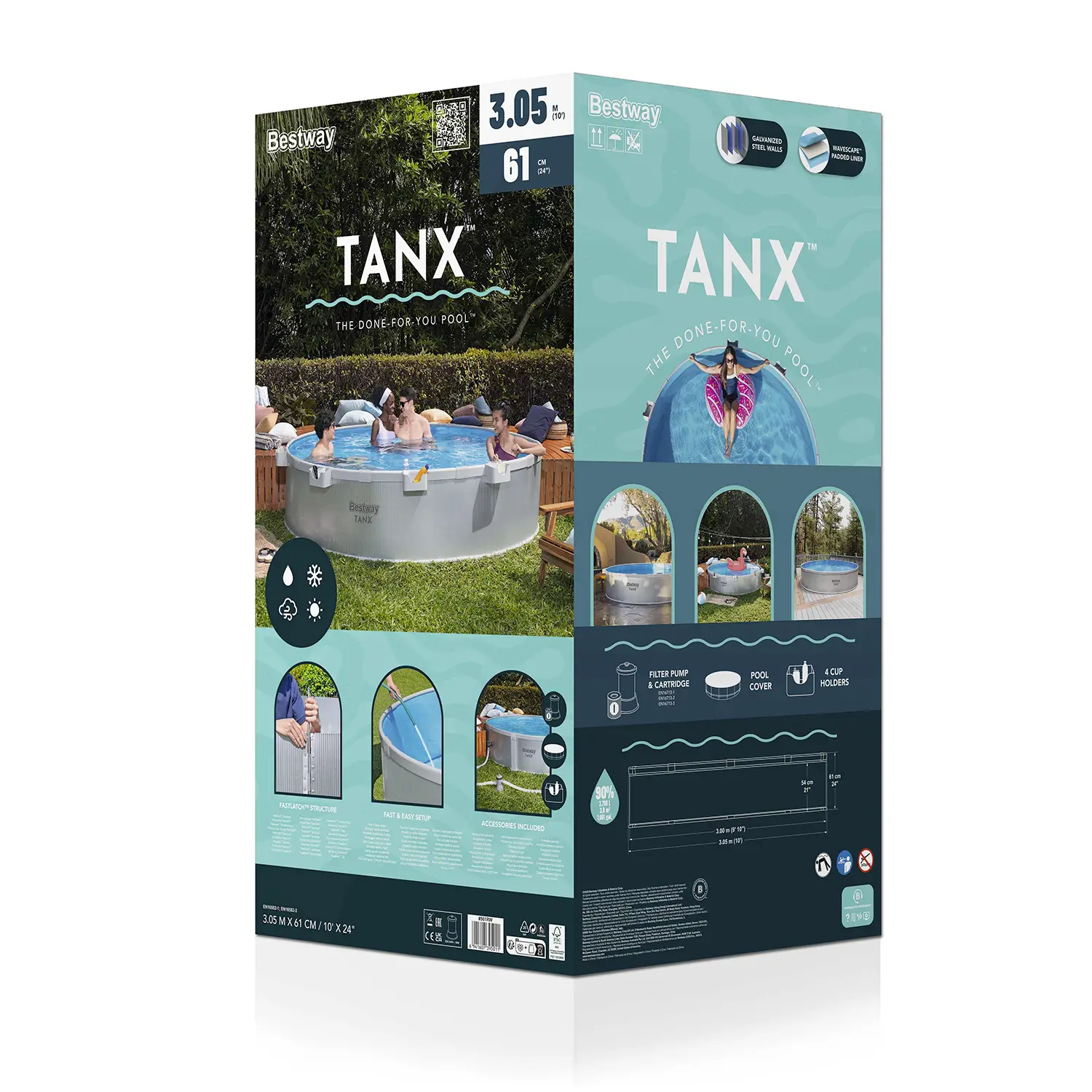 Dimensioni Compatte e Capacità Ideale Dimensioni 3,05 m x 61 cm, capacità 3.790 litri (90%). Perfetta per famiglie e relax estivo, offre spazio sufficiente per rinfrescarsi comodamente anche in giardini di dimensioni contenute.