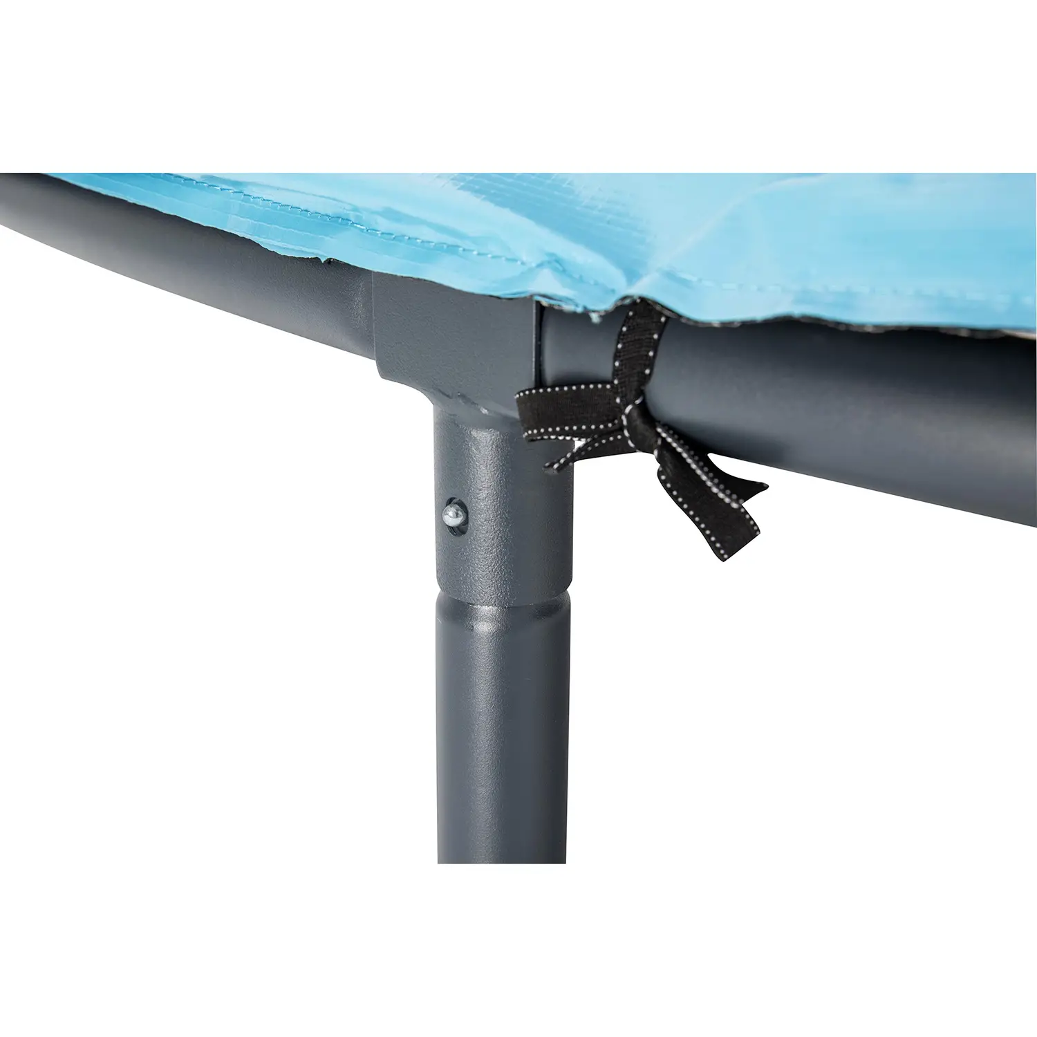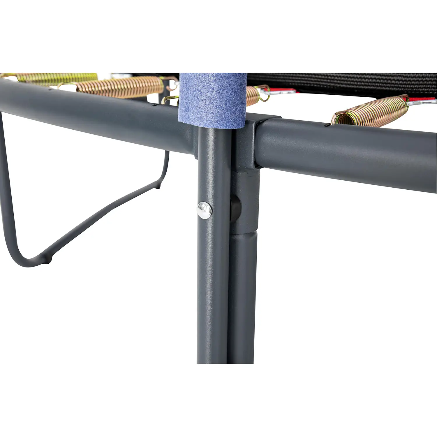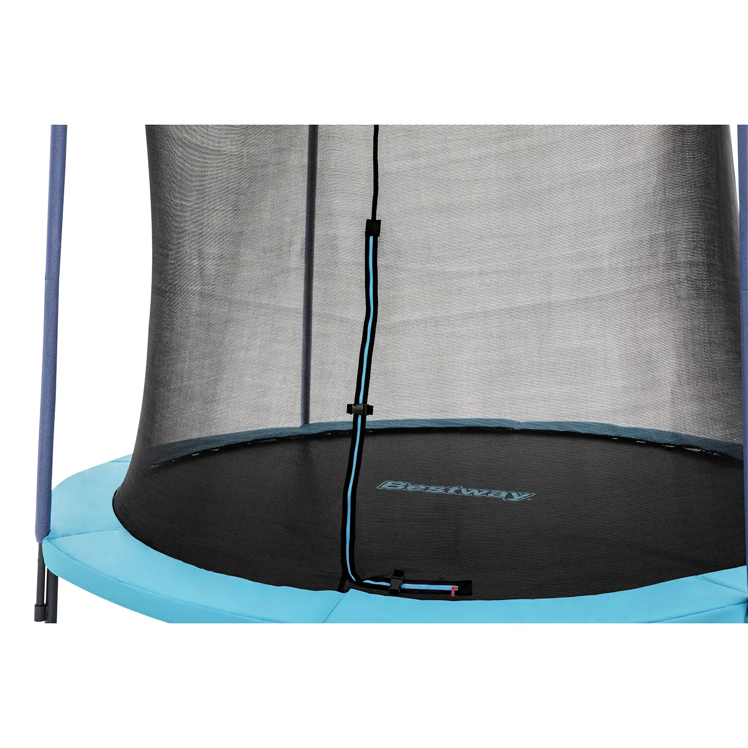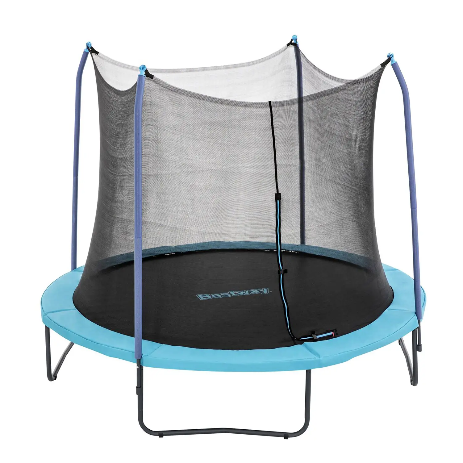 Sistema di sicurezza avanzato – Rete di protezione cucita direttamente al tappeto con ingresso a L dotato di cerniera e fibbie. I pali rivestiti in schiuma ad alta densità offrono protezione extra contro urti accidentali.