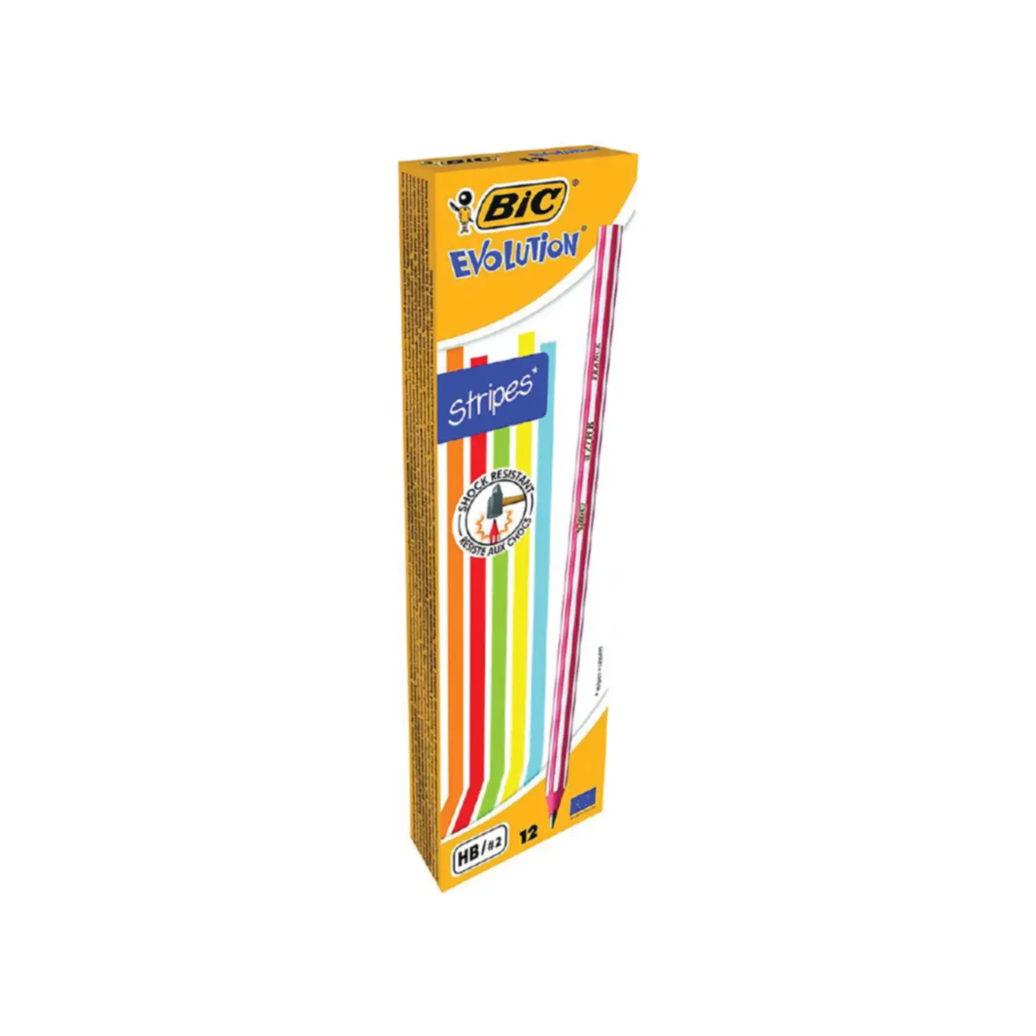 Le matite BIC Evolution Stripes uniscono qualità, sicurezza e stile. Perfette per studenti, ufficio e attività creative, offrono una scrittura fluida, resistente e sicura, con un design moderno a righe rosse che porta allegria e personalità nel tuo astuccio.