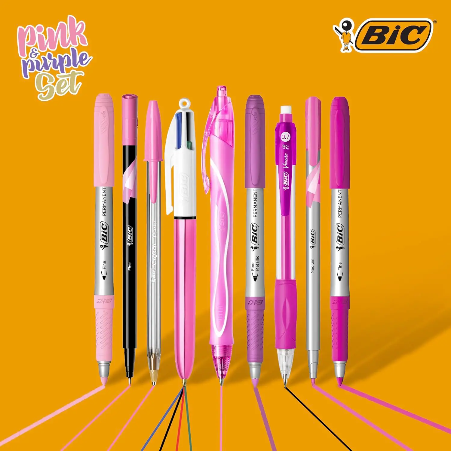 Penne a sfera per ogni esigenza - La penna BIC 4 Colours Shine e la Cristal Fun con tappo rosa garantiscono una scrittura scorrevole e precisa. Ogni dettaglio è pensato per combinare funzionalità e design vivace.