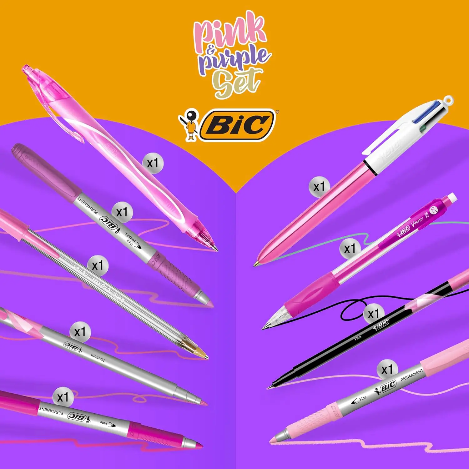 Set completo per chi ama scrivere con stile - Il BIC Pink & Purple Set offre una collezione completa di strumenti da scrittura in tonalità rosa e viola. Ideale per chi desidera organizzazione, creatività e colore in ogni momento della giornata.
