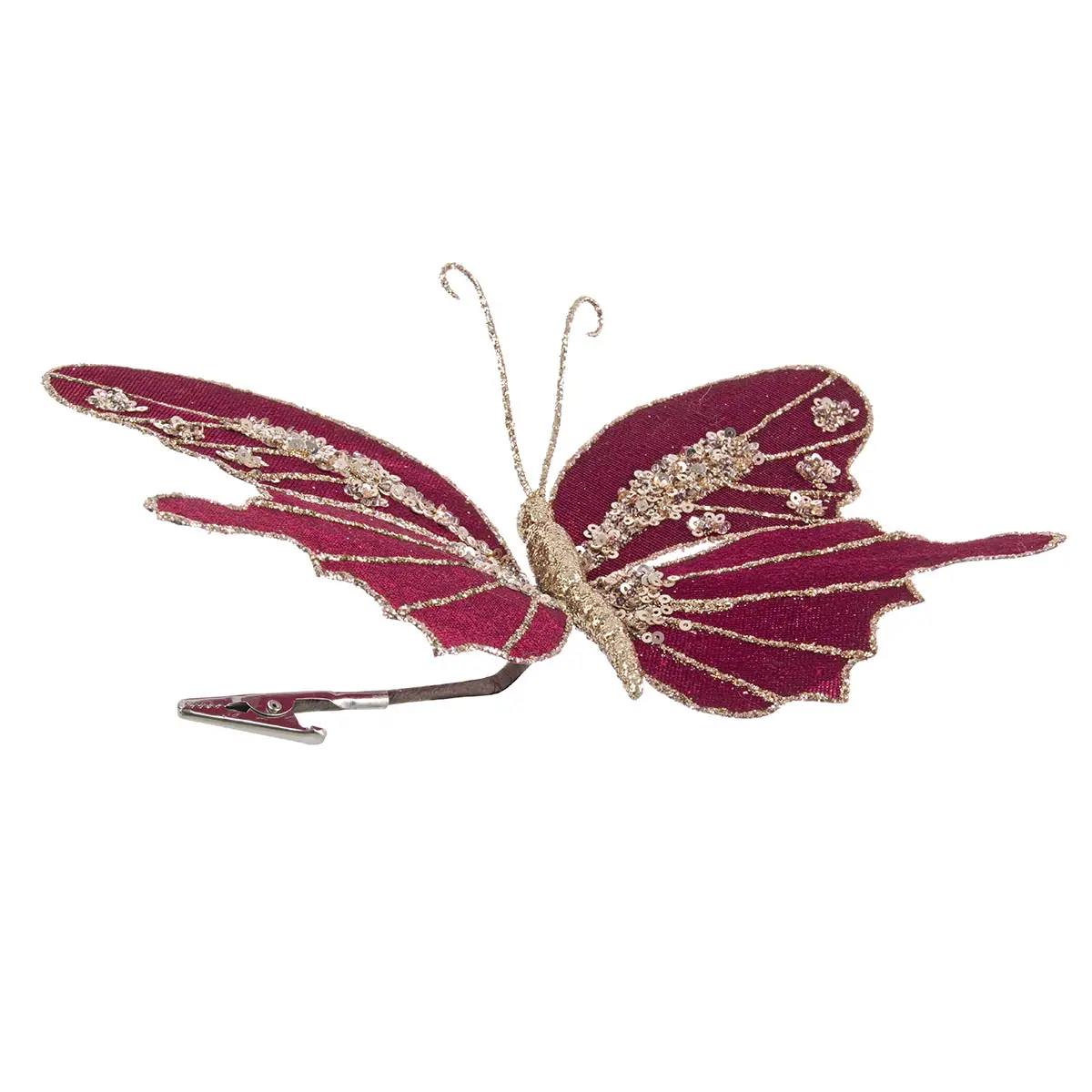 La Clip Enea Farfalla Bordeaux D20 non è solo un ornamento: è un dettaglio decorativo sofisticato, che arricchisce alberi, ghirlande o composizioni natalizie con eleganza e luce.