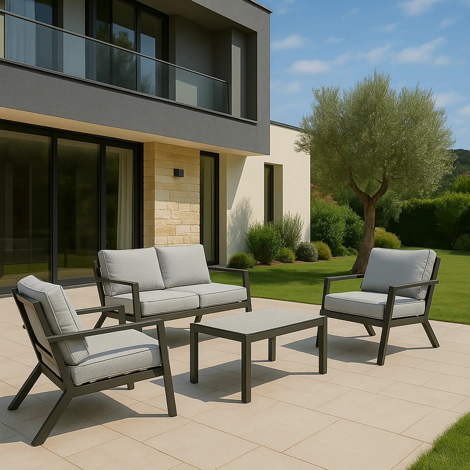 - ✅ Struttura in alluminio verniciato a polvere e cuscini in tessuto olefin resistente agli agenti atmosferici.