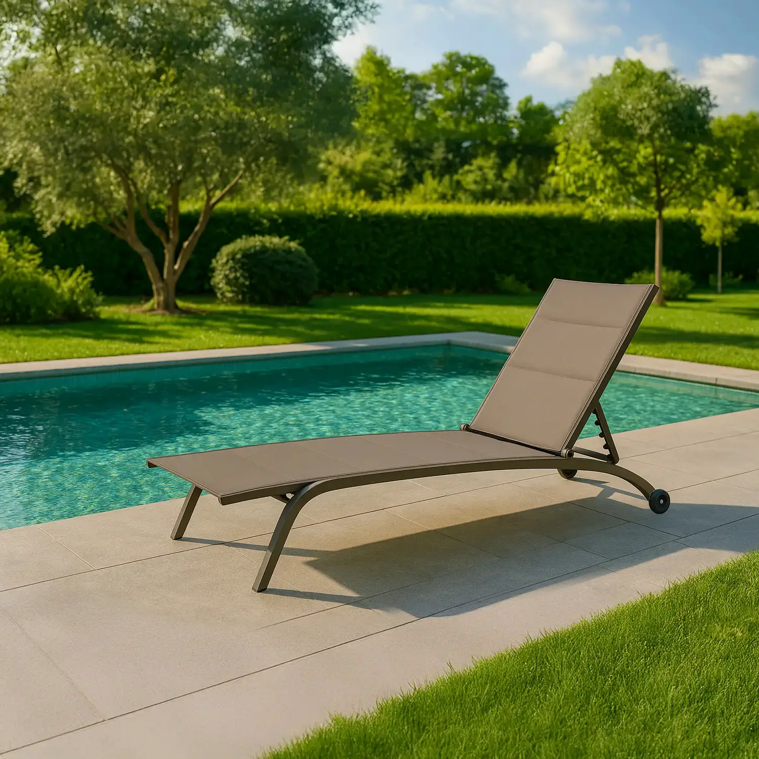 Il Lettino Cleopas con Ruote Tortora è la scelta ideale per chi cerca un lettino prendisole elegante, resistente e confortevole. Un perfetto equilibrio tra design moderno, funzionalità e qualità dei materiali, pensato per vivere al meglio il relax all’aria aperta.