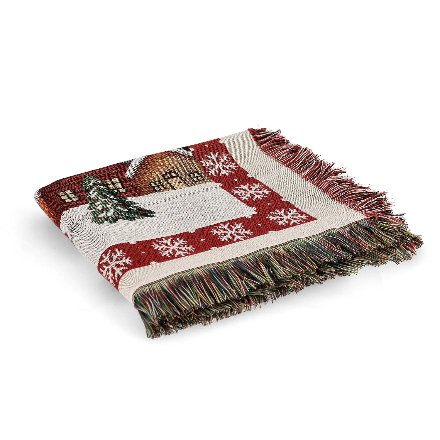 - ✅ Plaid natalizio Lapland con casetta innevata e fiocchi di neve.