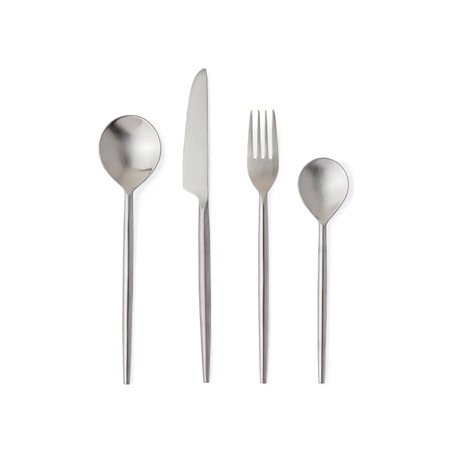 Set completo per 4 persone Il servizio include 16 pezzi: cucchiai, forchette, coltelli e cucchiaini, perfetto per l’uso quotidiano o per ospiti.
