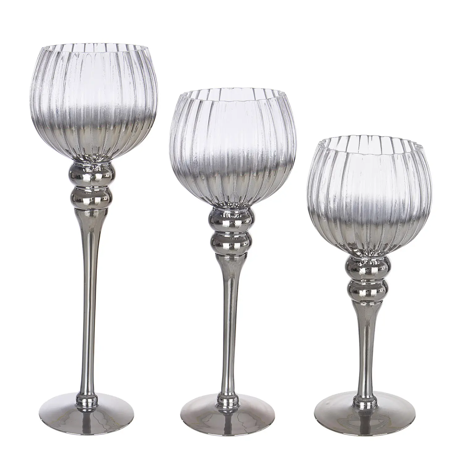 - ✅ Set da 3 portacandele eleganti in versione calice argento.