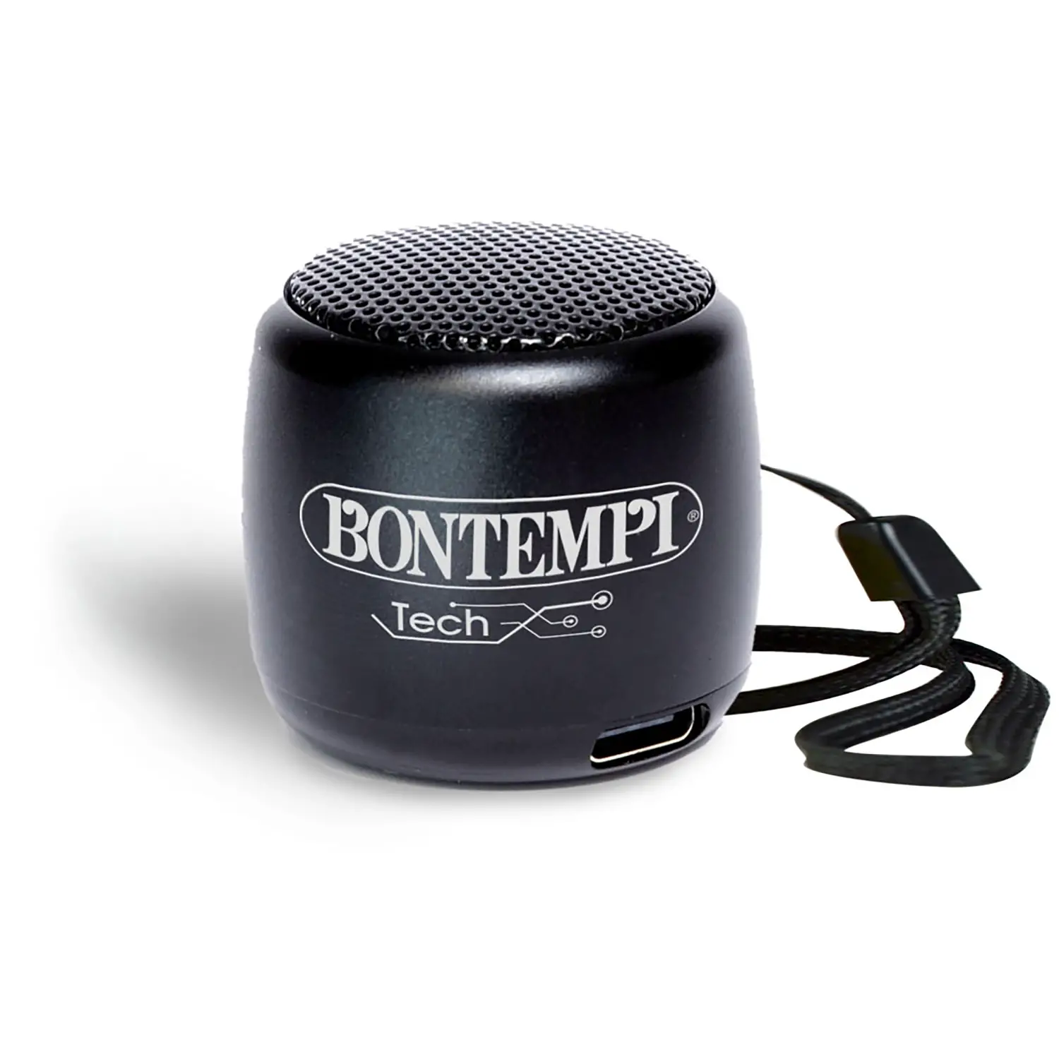 Design compatto ed elegante Questo Mini Speaker Bluetooth nero opaco combina un’estetica raffinata con una struttura ultracompatta da Ø 34 mm x h 29 mm, perfetta per ogni ambiente o tasca.