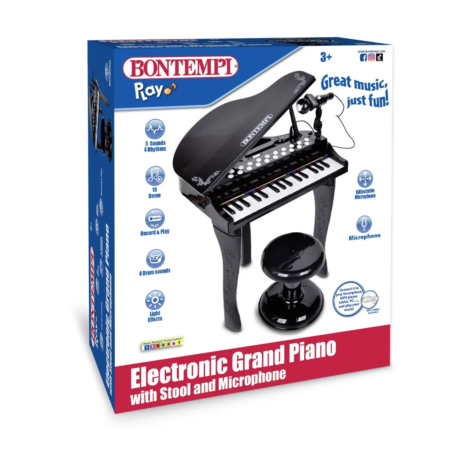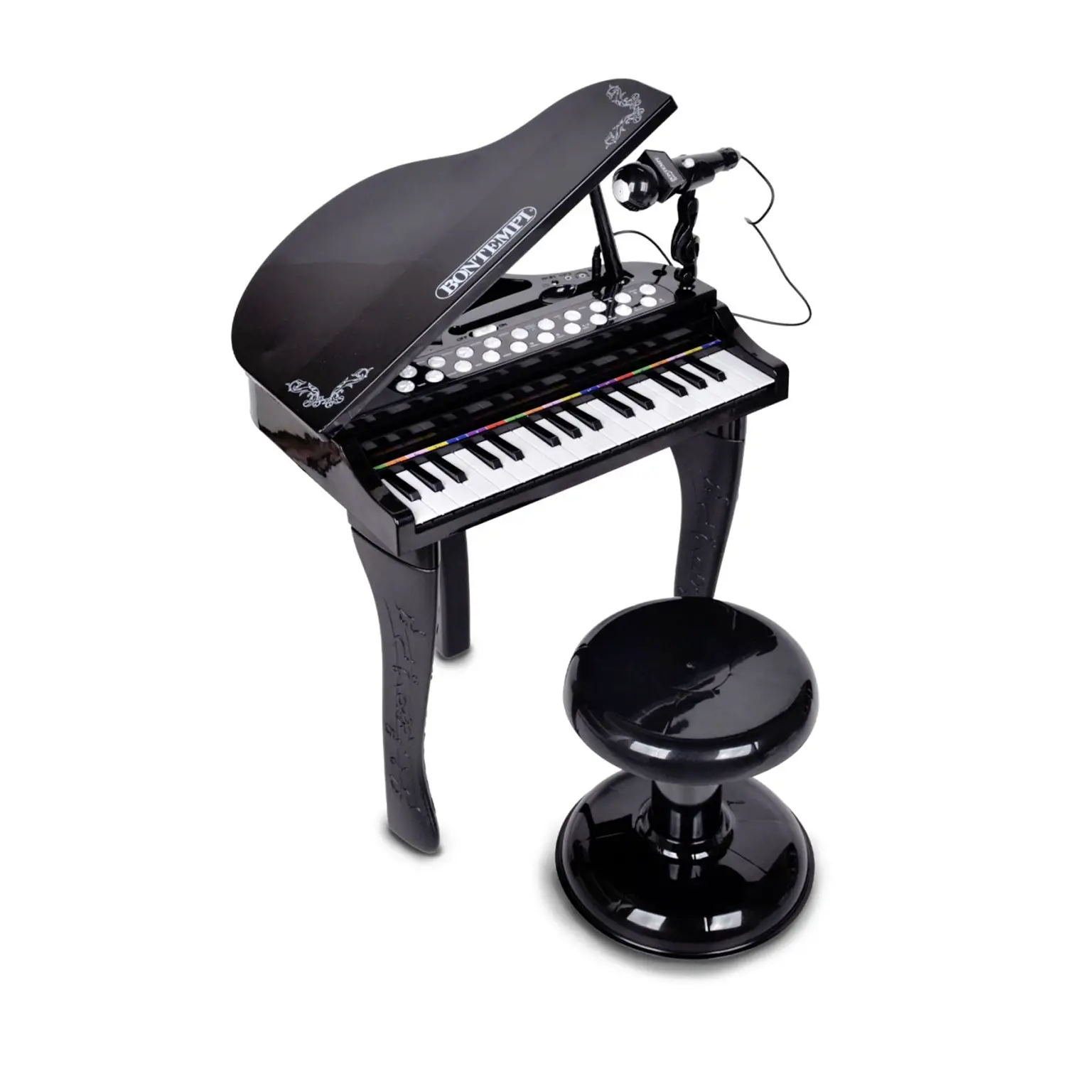 Eleganza e divertimento in formato baby grand piano Il pianoforte a coda elettronico Bontempi è perfetto per avvicinare i bambini al mondo della musica con stile. Completo di sgabello e microfono, offre un’esperienza realistica e coinvolgente.