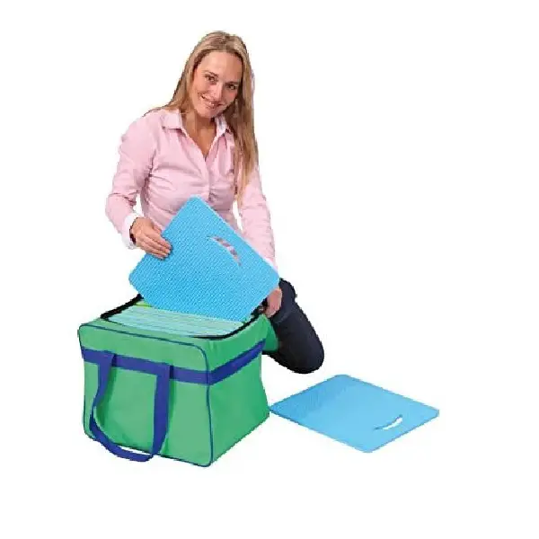 Borsa in robusta tela di nylon lavabile con chiusura zip e maniglie. Ideale per la custodia e il trasporto di ben 30 tappetini 7734. Colore indicativo, potrebbe variare secondo disponibilità al momento dell’ordine.