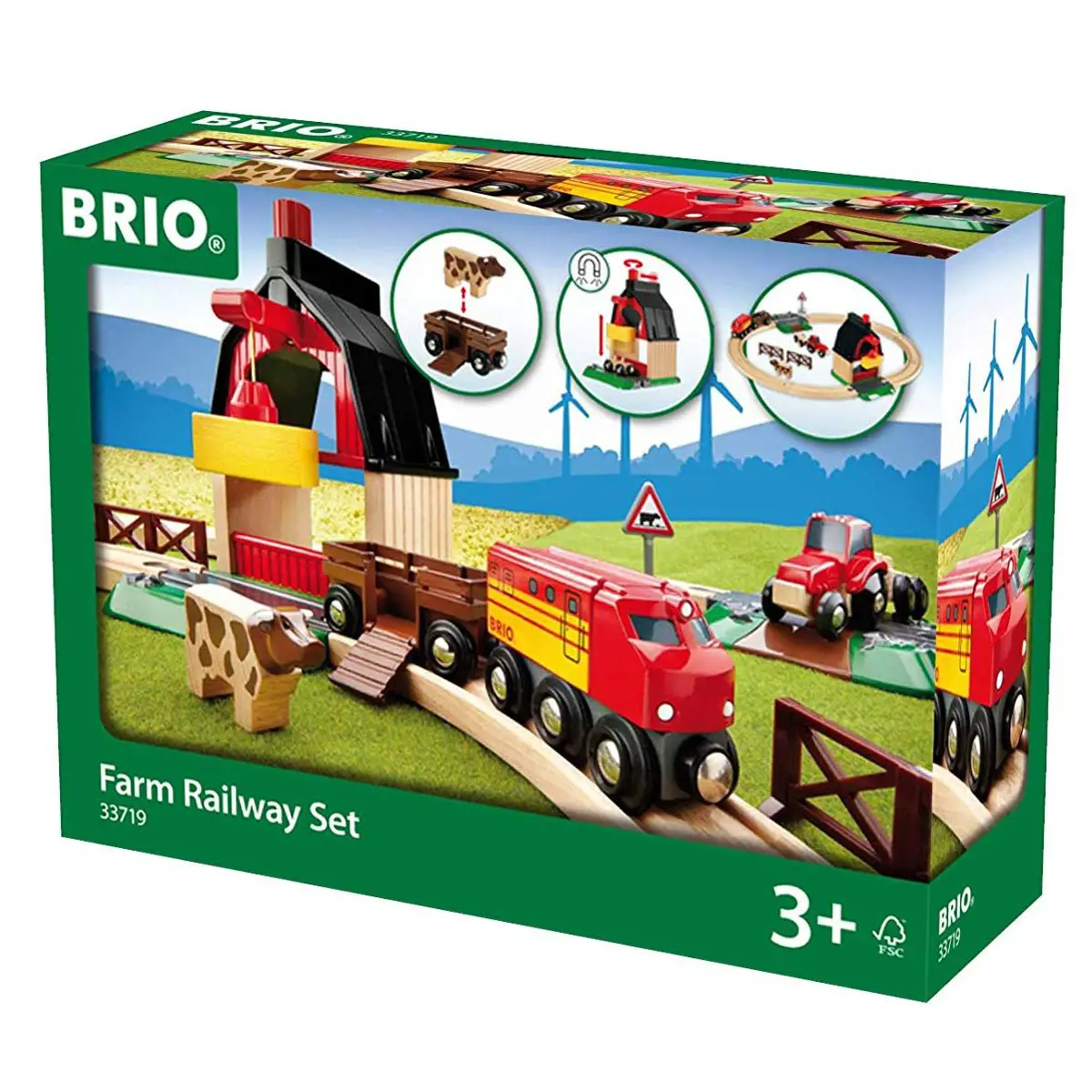 Brio Set Ferrovia della Fattoria – Set Agricolo in Legno con Locomotiva, Trattore e Fienile
