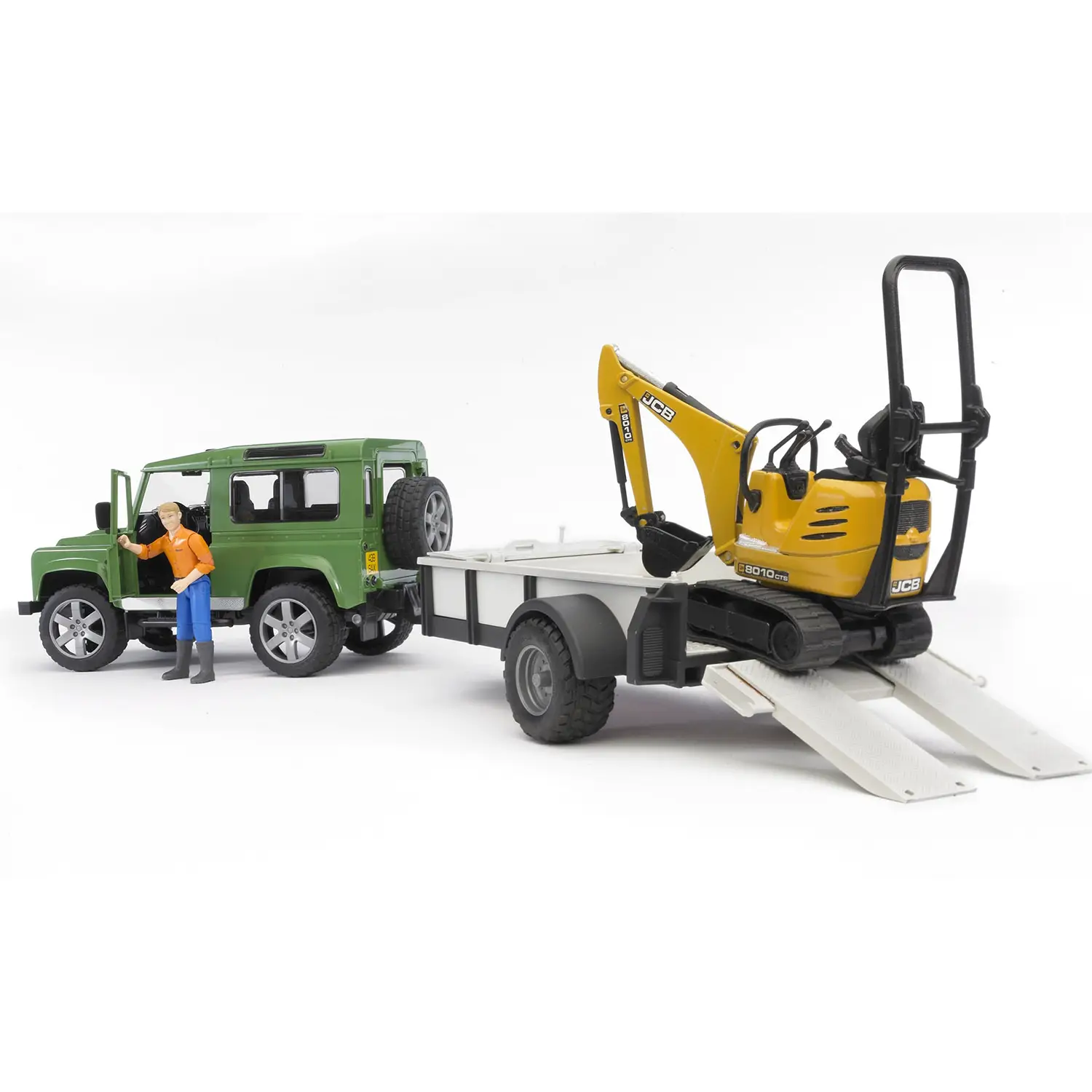 Bruder Land Rover Defender con Rimorchio ed Escavatore JCB
