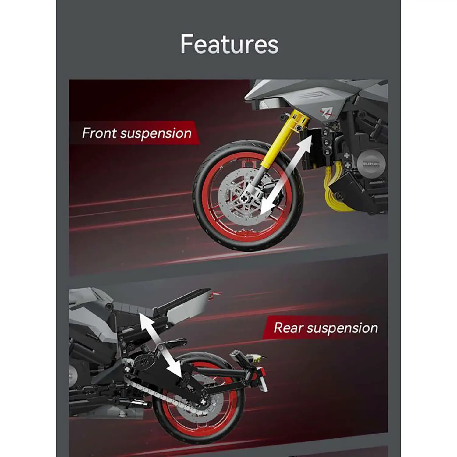 Componenti di alta precisione - Parti stampate e supervisionate da Suzuki, fedeli al design della moto originale per un livello di autenticità impareggiabile.
