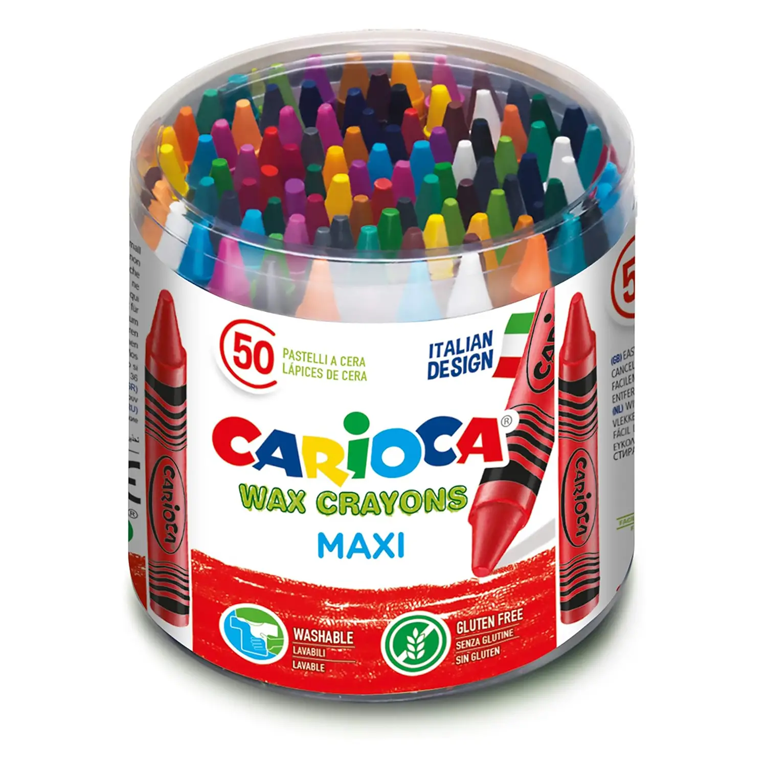 Pastelloni a Cera Jumbo CARIOCA – Barattolo 50 Pezzi Assortiti (12 Colori)