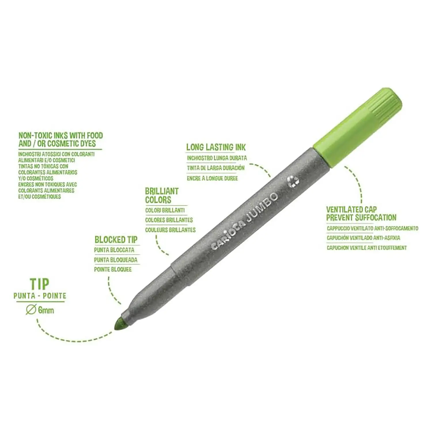 Pennarelli Jumbo ecologici per ogni attività creativa - I Carioca Jumbo ECO sono 72 pennarelli super lavabili con punta maxi da 6 mm, ideali per la scuola e l’uso quotidiano. Realizzati con il 98% di plastica rigenerata.