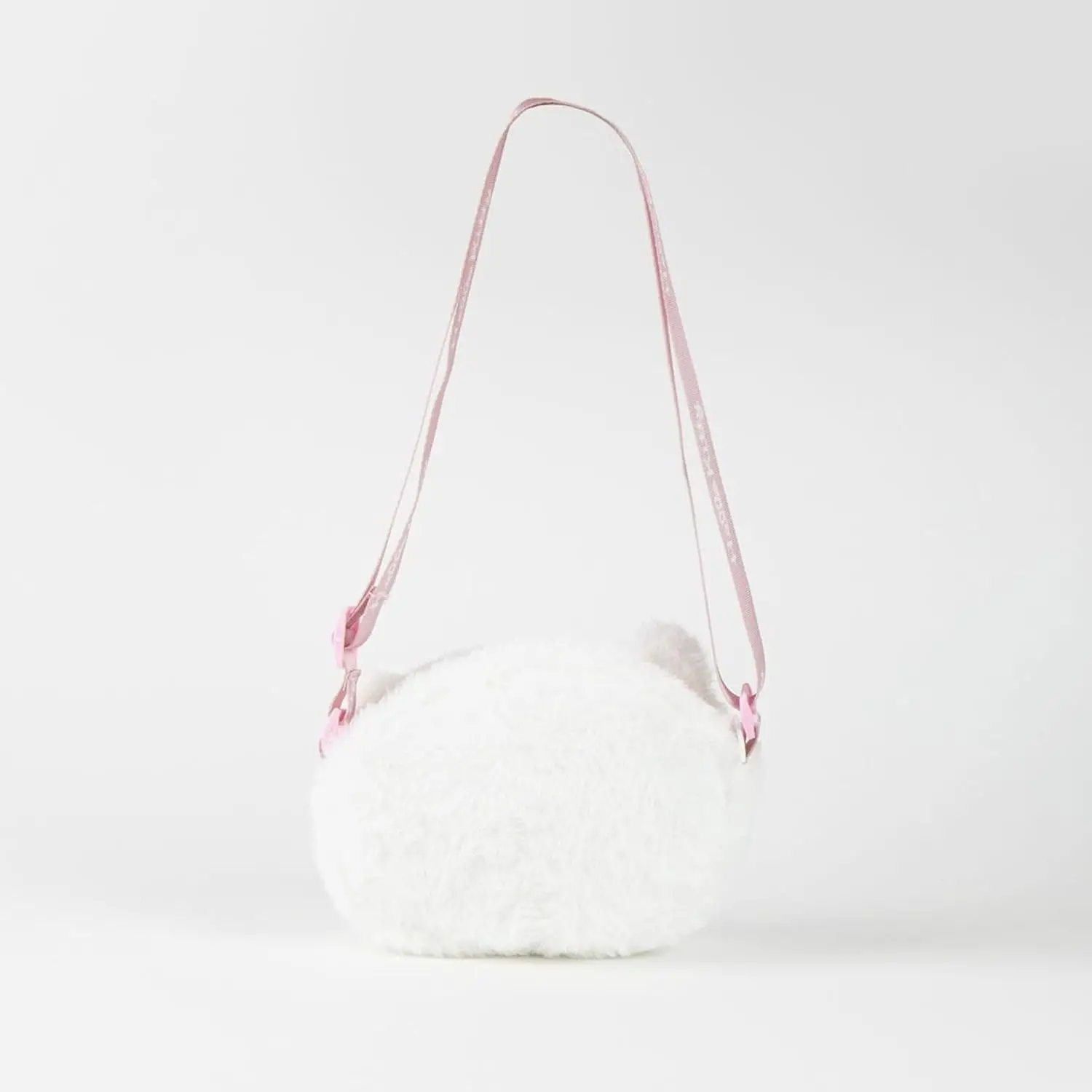 Morbidissima e Graziosa – Realizzata in soffice peluche bianco con fiocco rosa 3D e ricami delicati, la borsa riproduce fedelmente il viso di Hello Kitty in stile tenero e raffinato.
