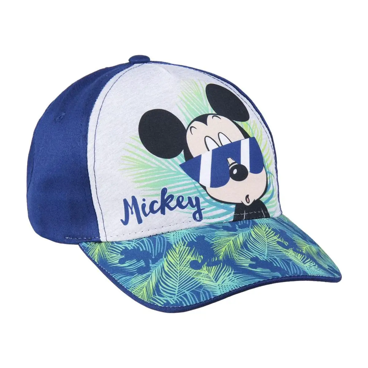 - ✅ Cappellino blu con vivace stampa di Mickey Mouse in stile tropicale, ideale per bambini e ragazzi.