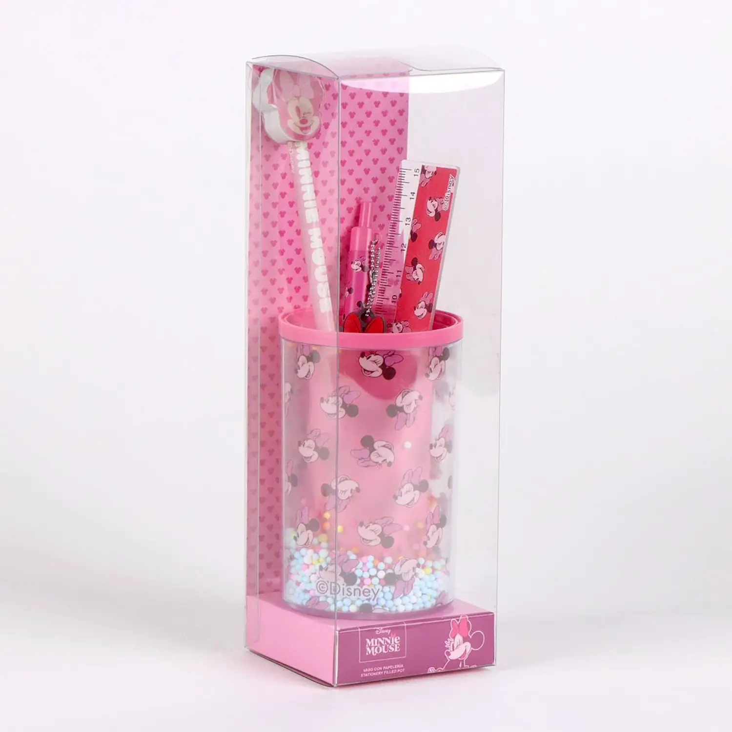 Set Completo per la Scuola e la Casa Il kit include portapenne, matita, righello e penna coordinati, decorati con le dolcissime immagini di Minnie Mouse, per rendere ogni momento di studio più divertente.