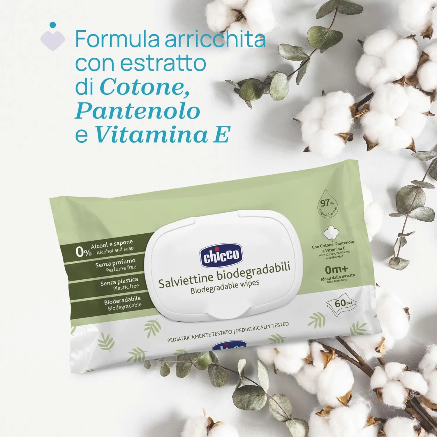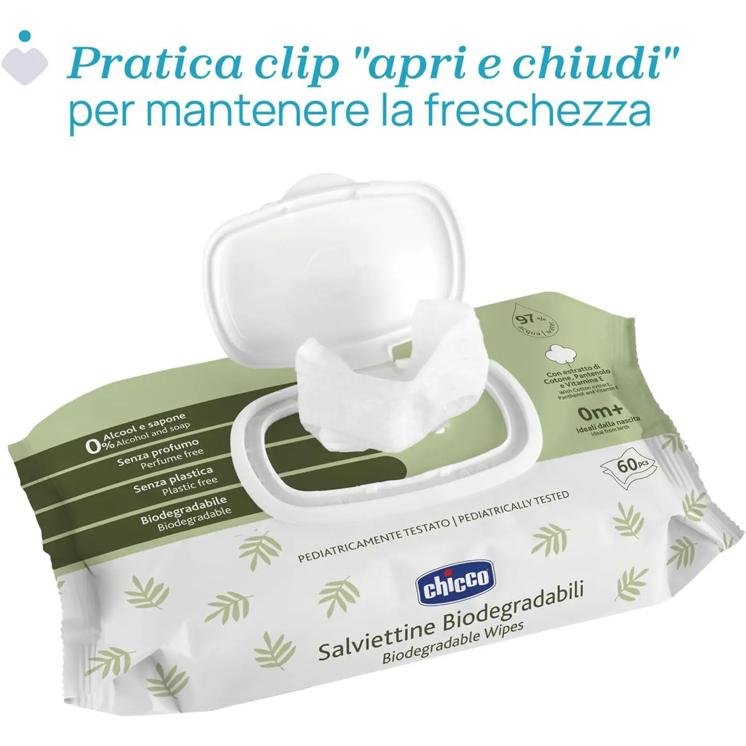 - ✅ 12 confezioni di Salviette biodegradabili Chiccoda 60ps , perfette per neonati, realizzate con fibre naturali biodegradabili.