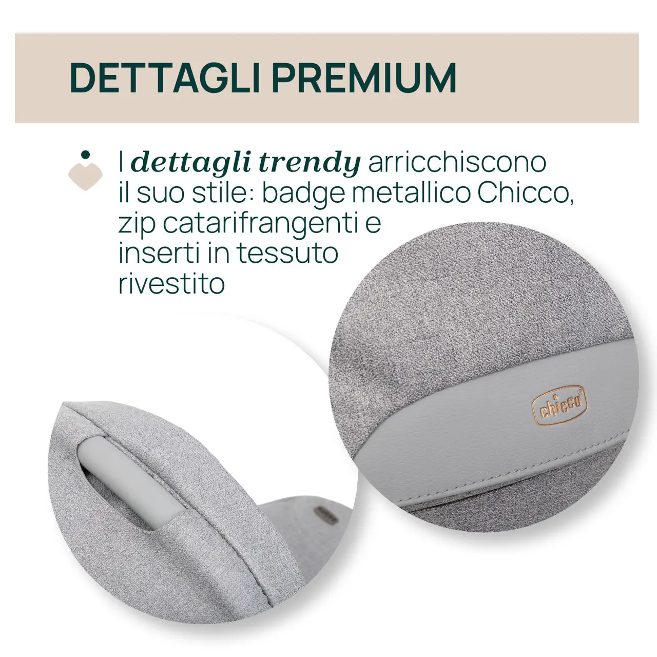 Dettagli Premium e Accessori Inclusi Arricchita da badge in metallo Chicco, cerniere riflettenti e inserti rivestiti, la culla Flexi unisce estetica e funzionalità. Inclusi maniglie di trasporto, copertina navicella, coprigambe, cappottina parasole e privacy sunvisor.