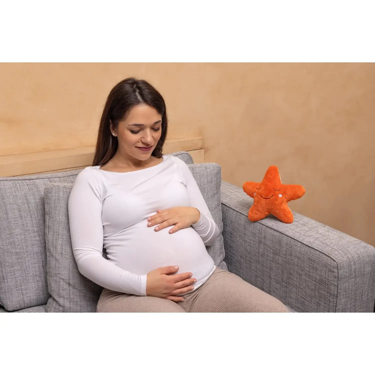 Peluche in Tessuto Morbido e Lavabile La stella in tessuto è morbida, lavabile in lavatrice e progettata per essere utilizzata sin dalla gravidanza, favorendo continuità sensoriale tra pancione e culla.
